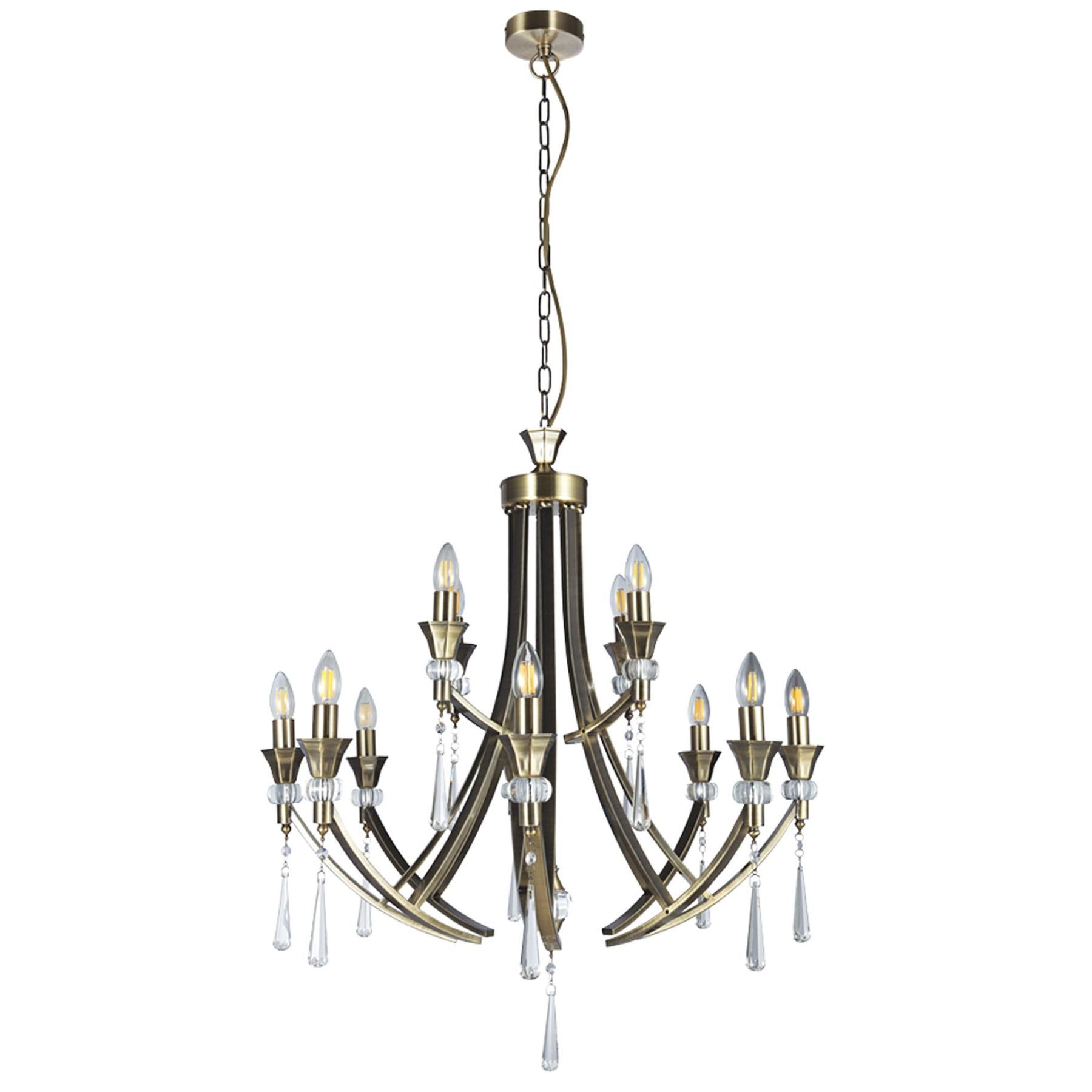 Sophia 12 Light Crystal Ceiling Light - Antique Brass/Satin Chrome Finish