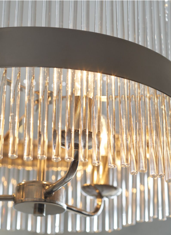 A thoroughly modern ceiling light from Laura Ashley, the Alexa is a gorgeous circle of slender, upright crystal rods, not unlike the fringe on a flapper’s dress, banded with a broad belt of steel with a polished chrome finish. Containing five lights, this large decorative pendant will fit neatly into any room of your home, adding up to the minute style.