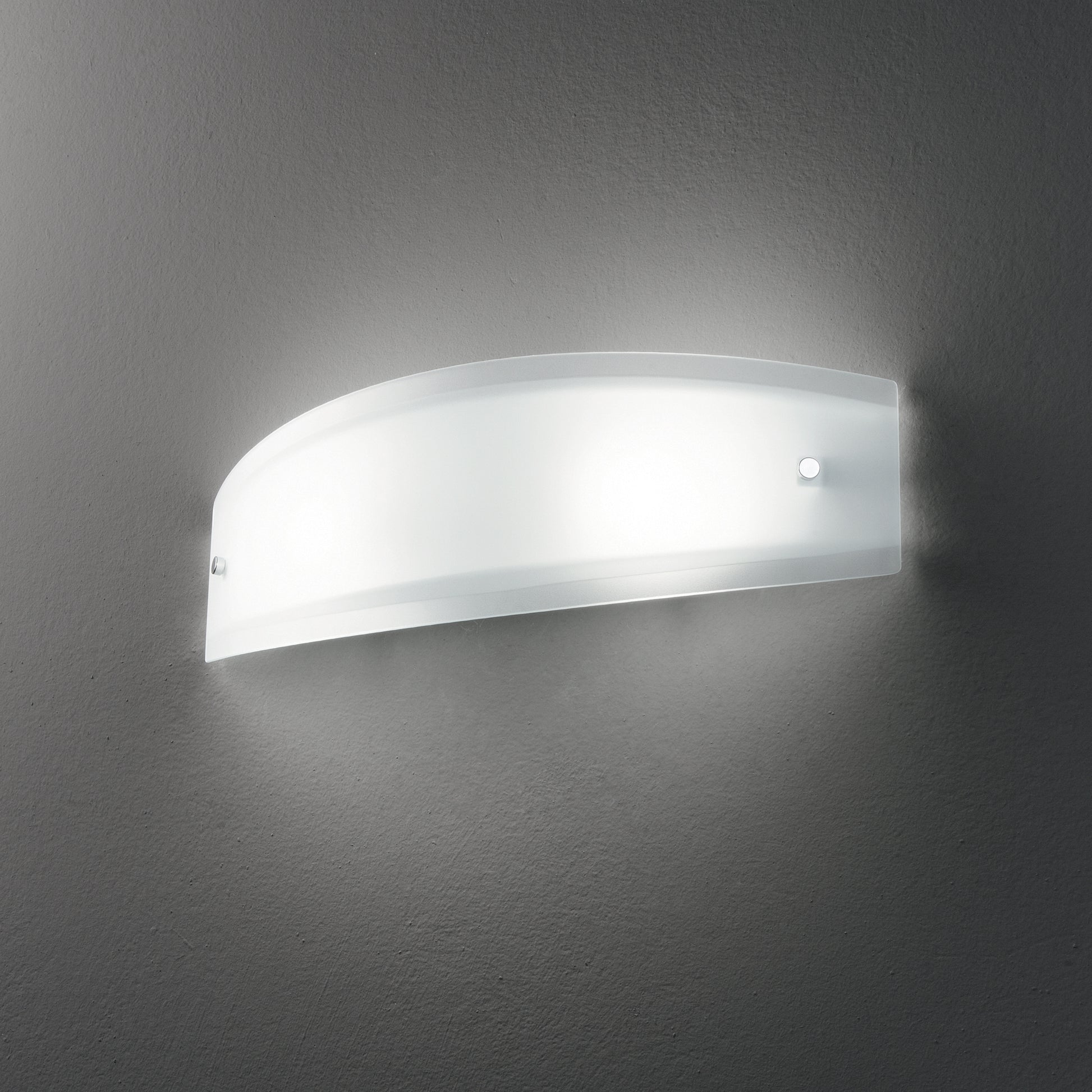 White acid-etched glass diffuser composed of three elements: two lateral and one frontal. Chrome glass retaining screws.