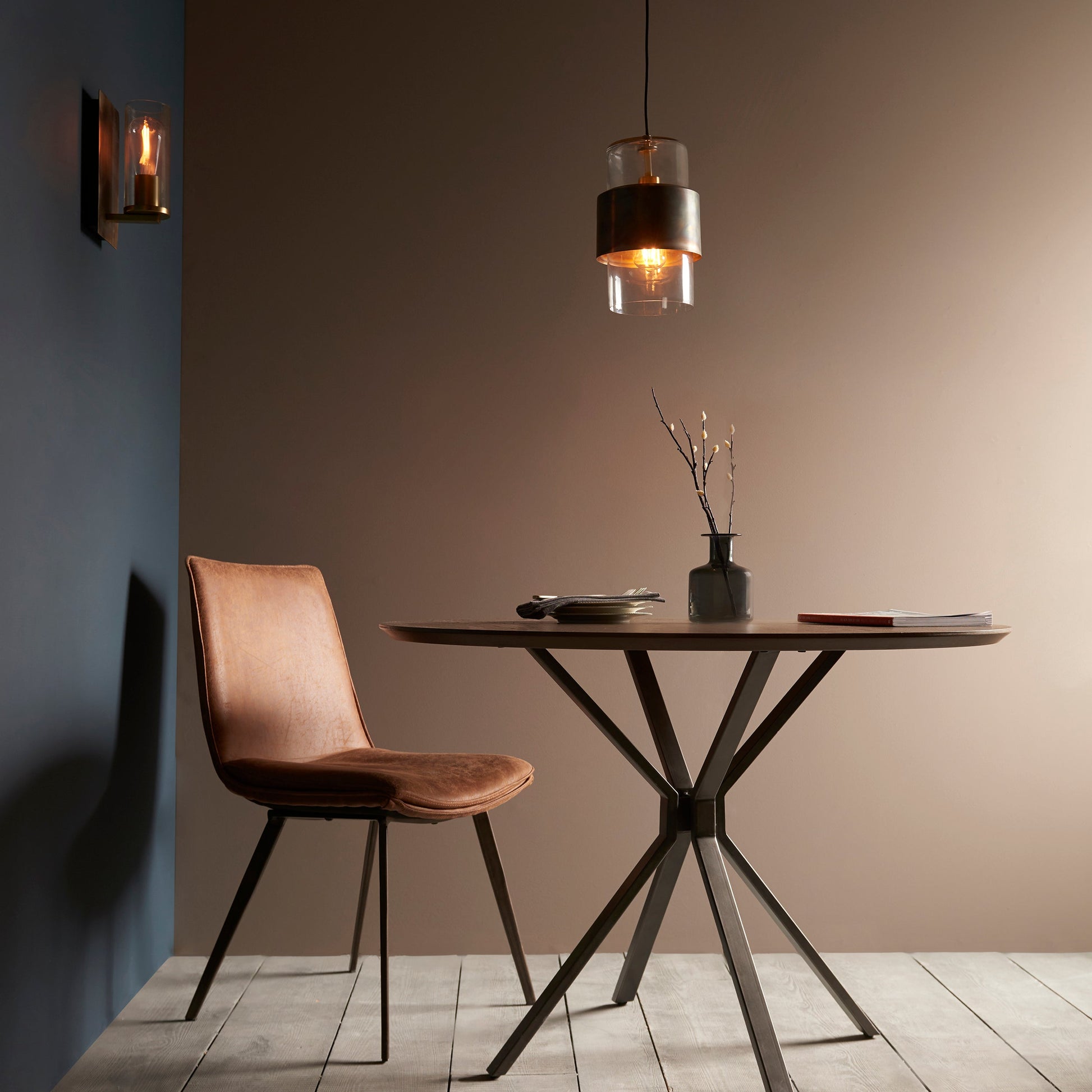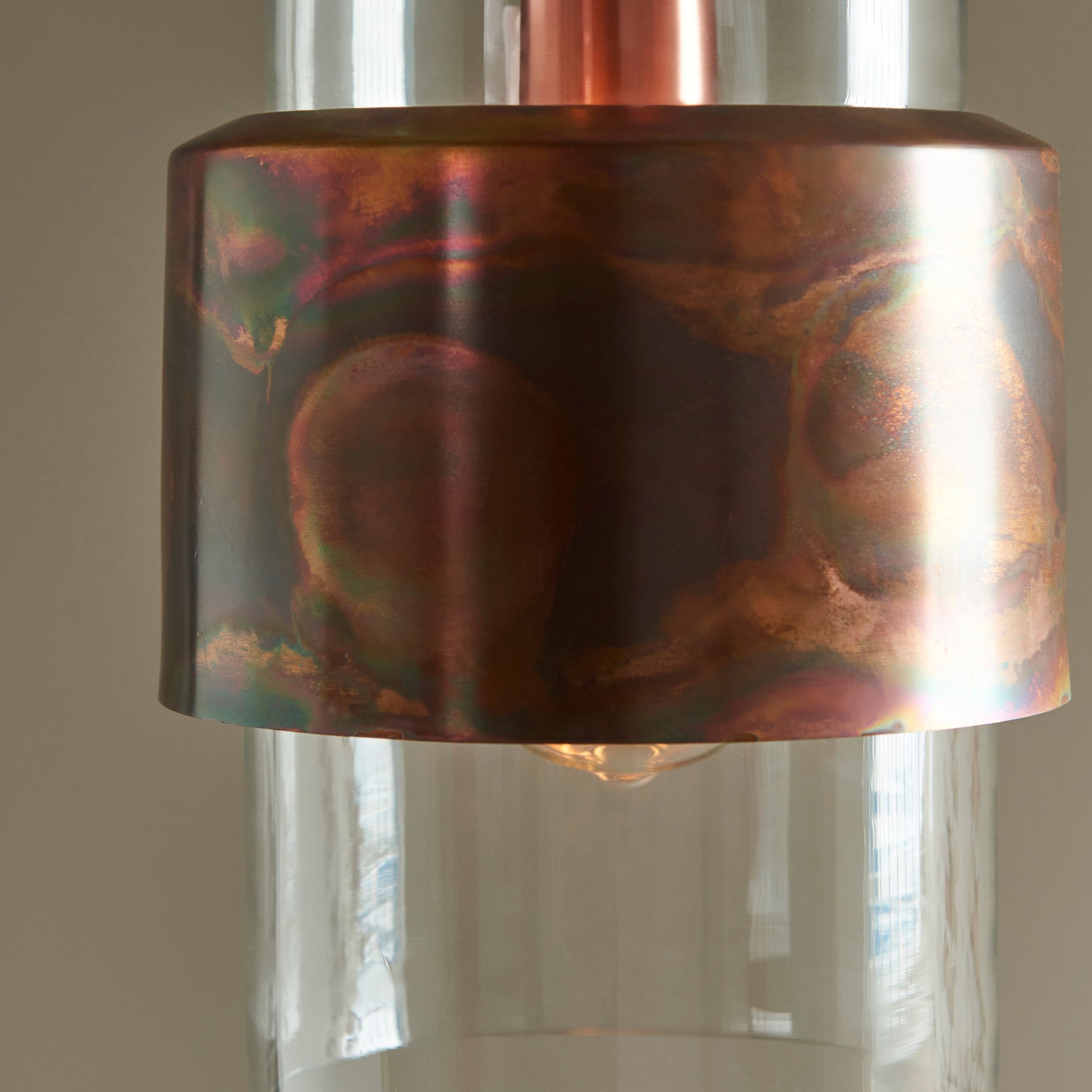 Stylish ceiling pendant light with a glass shade and industrial style band: