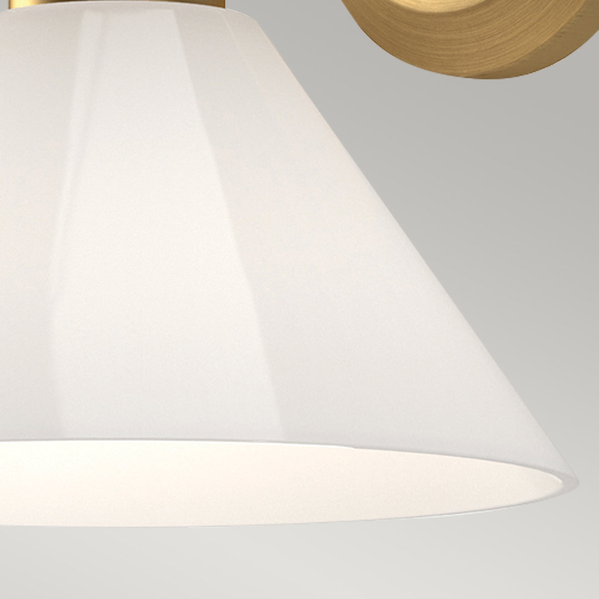 Inspired by the classic silhouettes of 1950s' formal wear, the Halston inspires by mixing vintage with Contemporary. Decorative glossy opal shades create ambiance and are pulled together with dainty metallic details. Add a touch of timeless couture to your space with this stunning wall light.