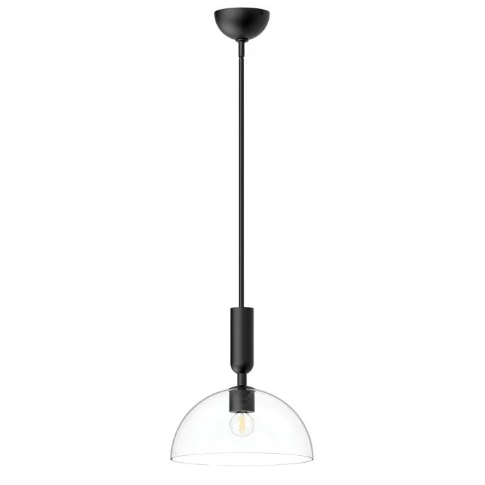 The culmination of simple shapes and unexpected details make the Jude collection unique. With geometric stems and organically curved details, the Jude adds artistic flair to any space. This collection of delicately forged metal is topped with a classic half-dome glass shade, giving it an hourglass-like silhouette.