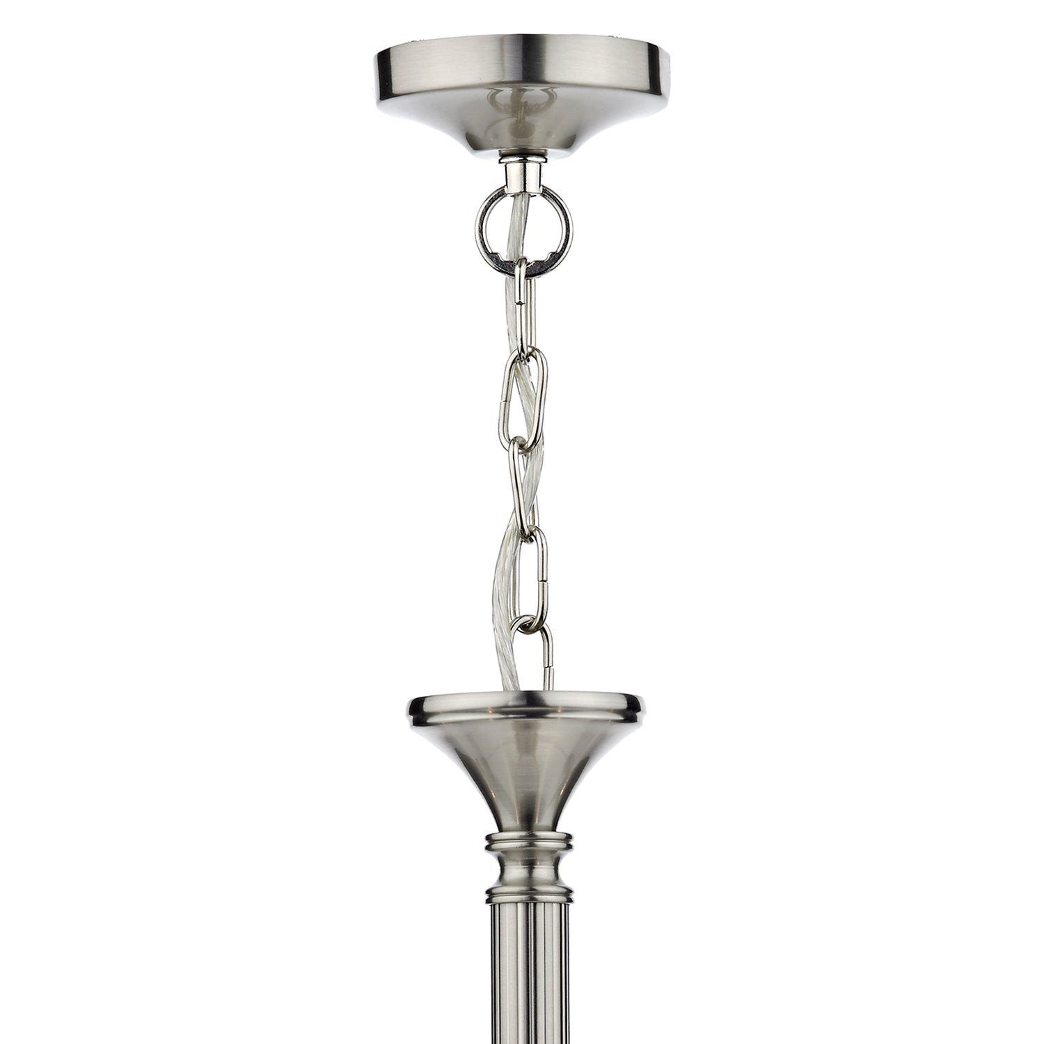The AMBASSADOR 8lt Pendant is finished in satin chrome/ antique brass and has a feature ribbed central column.