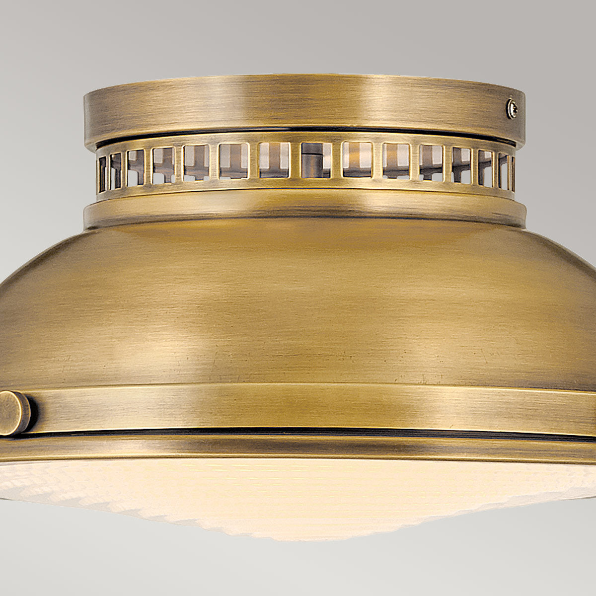 Amelia’s classic two light Flush design reinvents vintage details with a cast glass diffuser, cast metal trim ring and ornamental clasps. Bold finish options glow with retro inspiration.