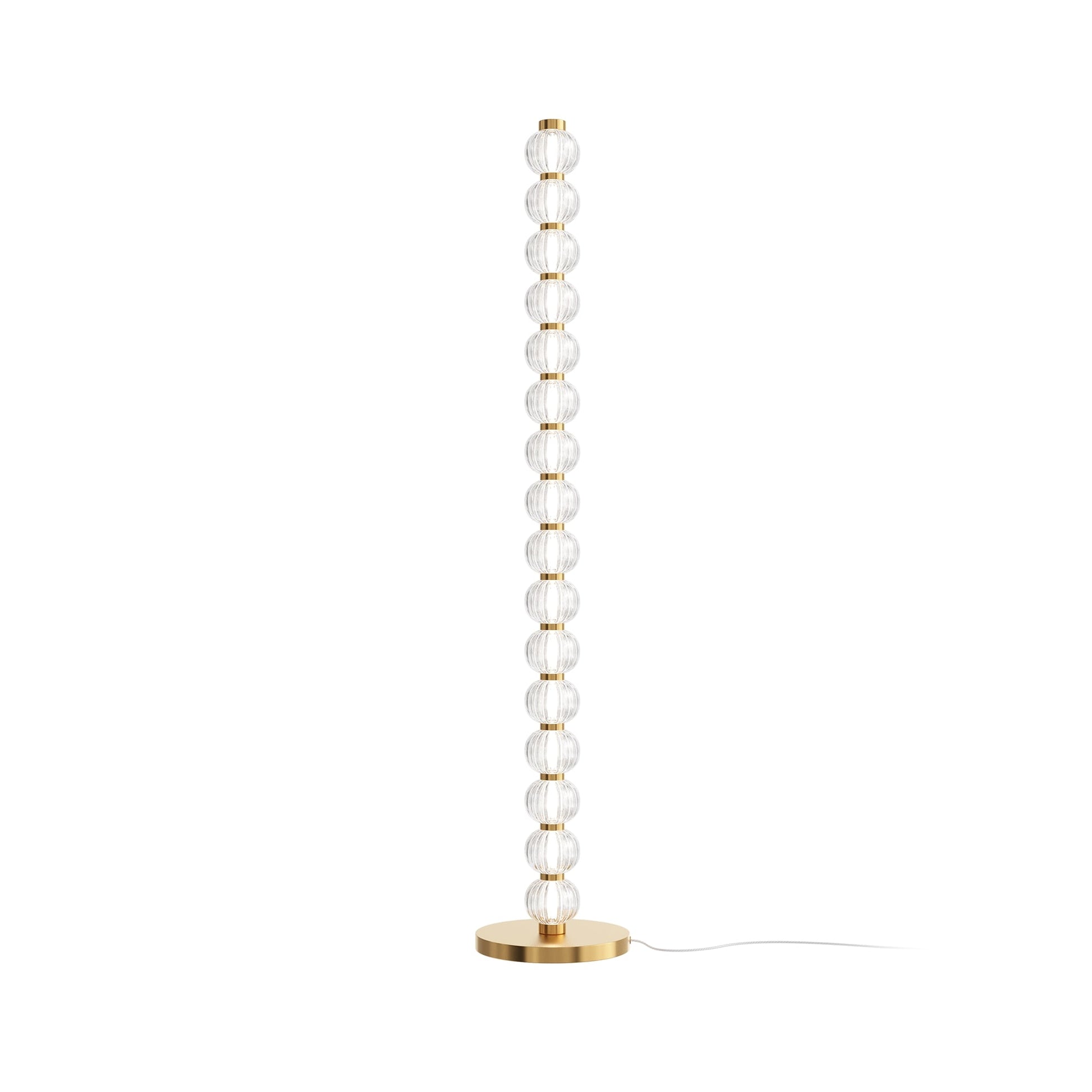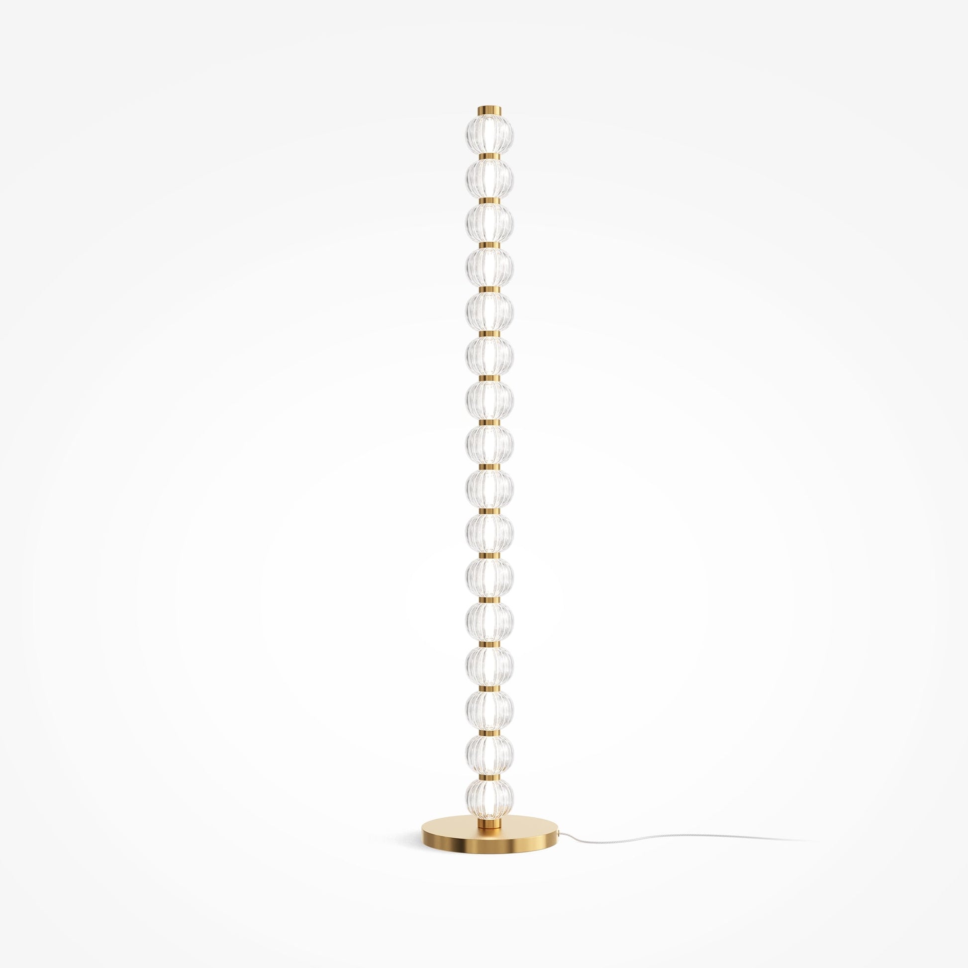 Metal fittings, color — gold. Accent decorative elements in the form of relief spheres of cast glass. Light source — LED strip — hidden under acrylic diffuser. Height of pendant lamps is adjustable.