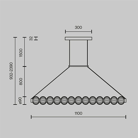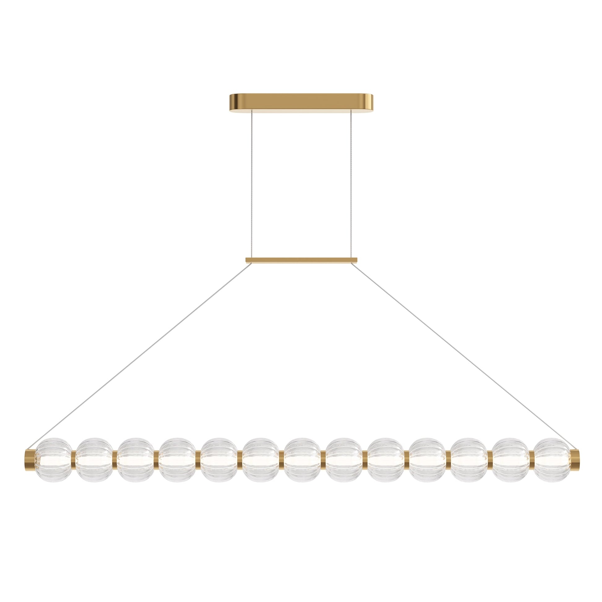 Metal fittings, color — gold. Accent decorative elements in the form of relief spheres of cast glass. Light source — LED strip — hidden under acrylic diffuser. Height of pendant lamps is adjustable.