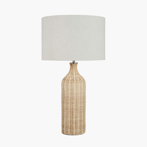 Elevate your home with our stunning woven rattan table lamp in a natural hue. With its delicate weave and elegant tall, bottle shape, this table lamp is guaranteed to make a statement. The table lamp base is topped off perfectly with a lined, textured white linen lampshade.