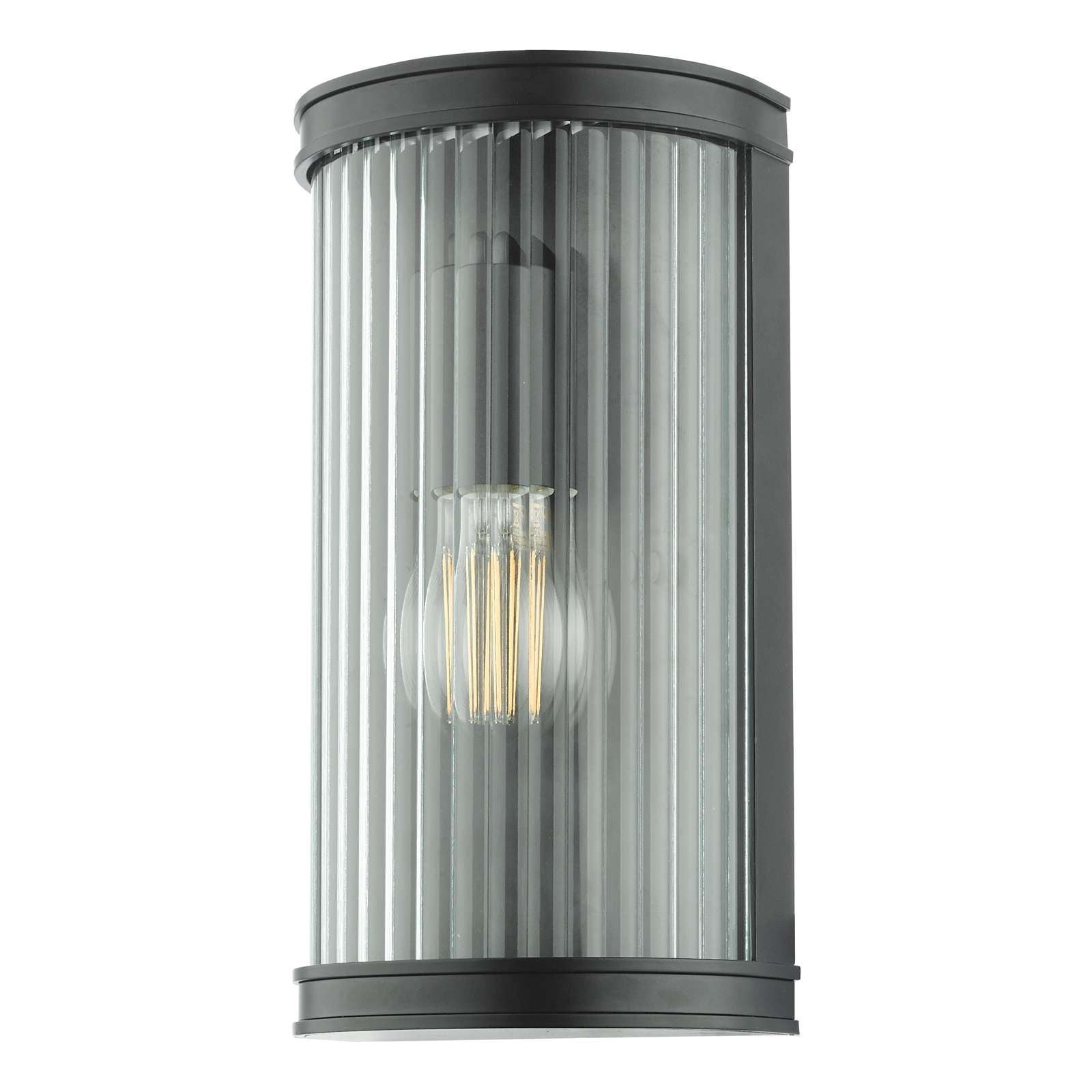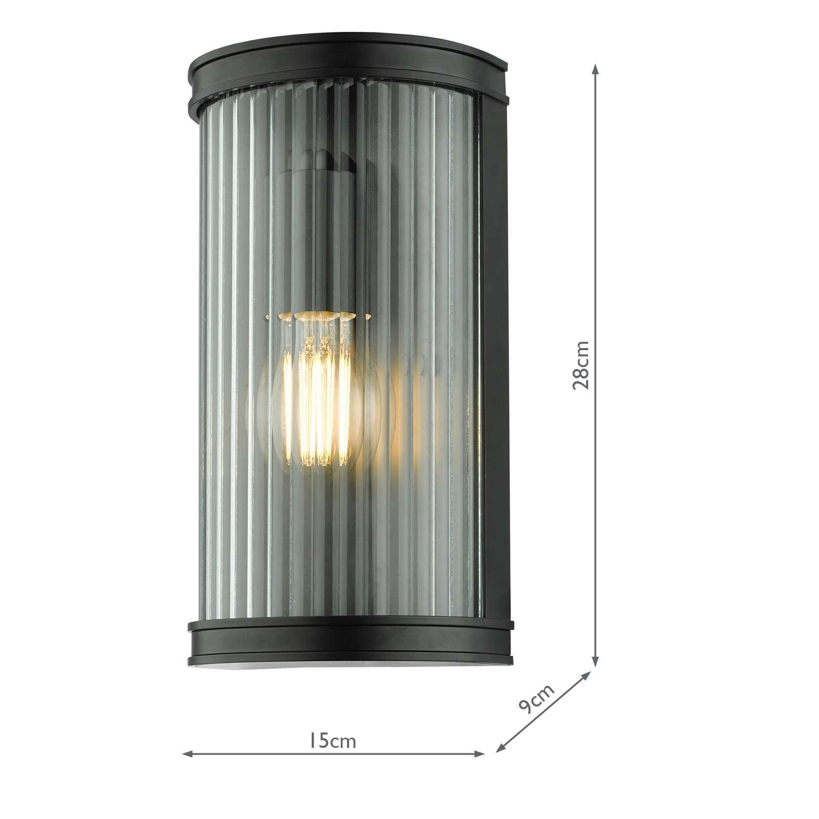Anund Wall Light Matt Black Ribbed Glass IP44