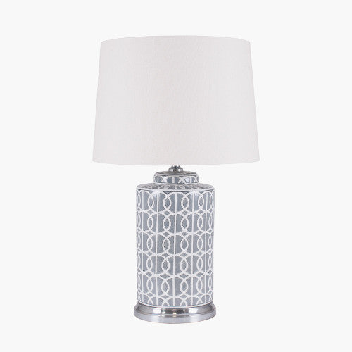 Aris Tall Grey and White Geo Pattern Table Lamp