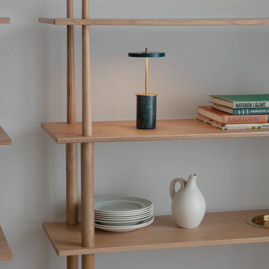 The sleek and stylish expression of the Asteria Move Mini is accompanied by an interchangeable solid marble base, adding a classic touch to the design. Asteria Move Mini has four different light steps that allow you to adjust the light to the desired setting with a gentle touch on the base of the lamp.