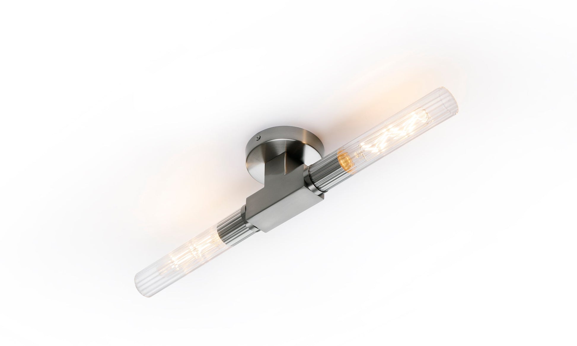 Asti is a sleek and stylish IP44 lighting collection. The slim, grooved, tubular glass make the design ideal and cohesive for use in bathrooms. Available in three different colour finishes there is an option to suit a wider variety of colour schemes. The flush ceiling light and wall lamp can be further enhanced by the use of the recommended E27 tubular lamps.