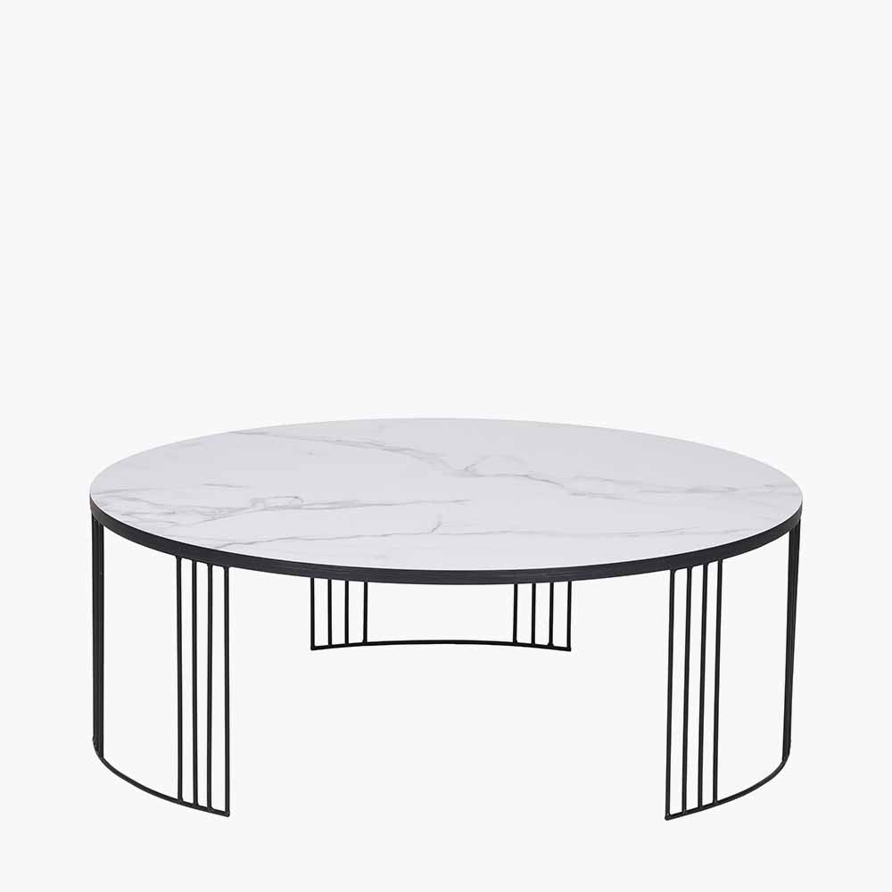 Atri White Marble Veneer and Black Metal Coffee Table