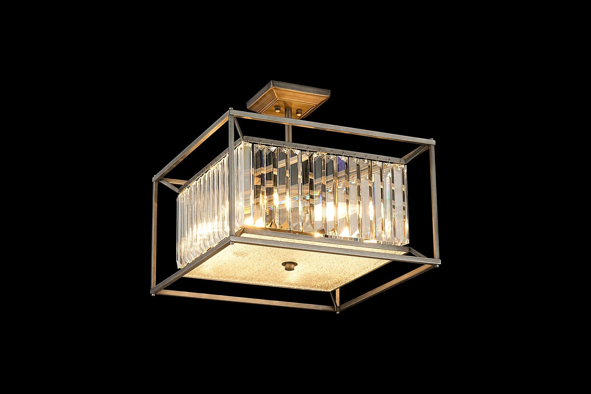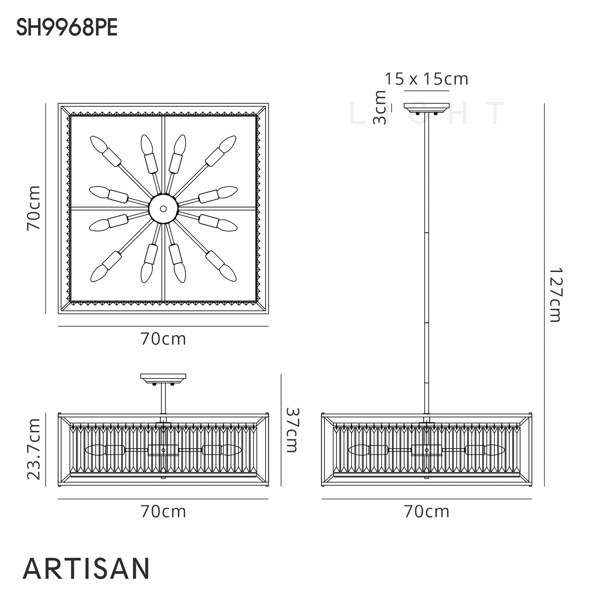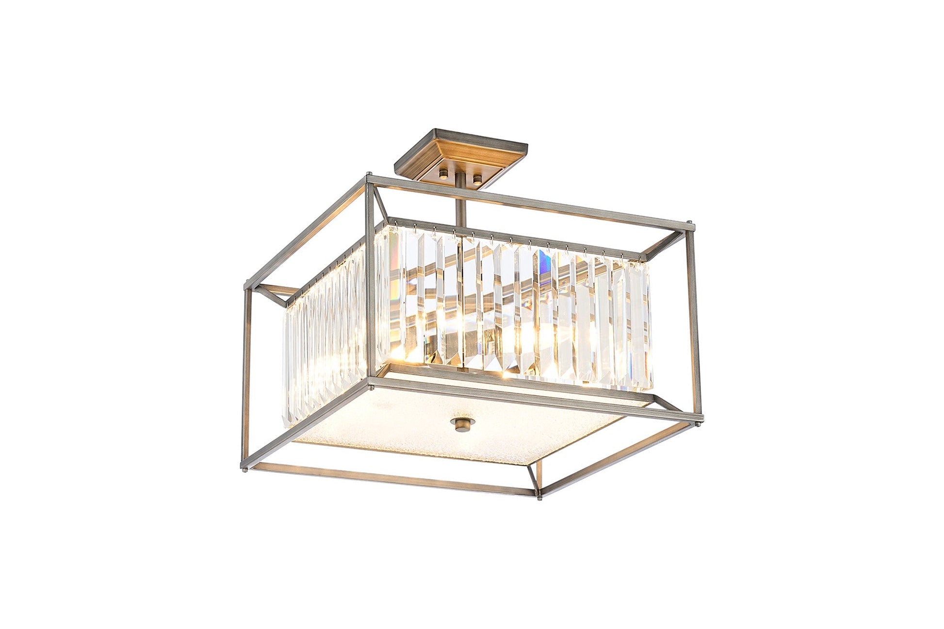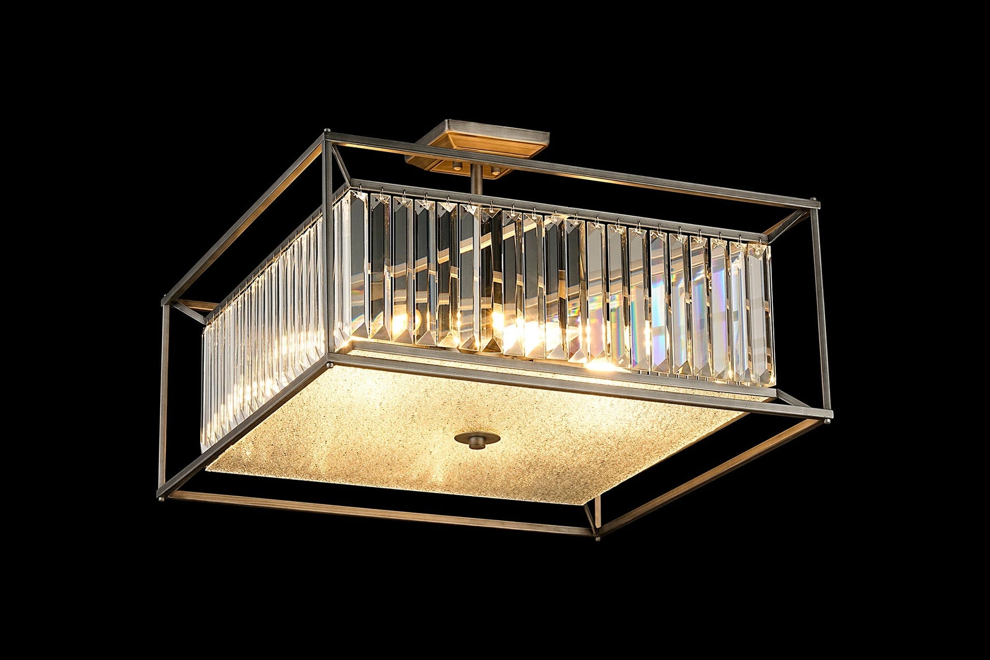 The open cuboid, pewter framework of the Attica range perfectly displays and enhances the inner border of clear rectangular crystal pieces. Available in three sizes, each pendant suspended by a fixed rod is supplied with additional parts so they can be converted to a semi flush fixture. The high quality crystals conceal the E14 lamp holders for an artistic visual when both illuminated and not. The grain glass diffuser which sits underneath the crystals provides an even more attractive dispersal of light. A contemporary range, Attica harmonises an old world colour finish with modern sparkle.