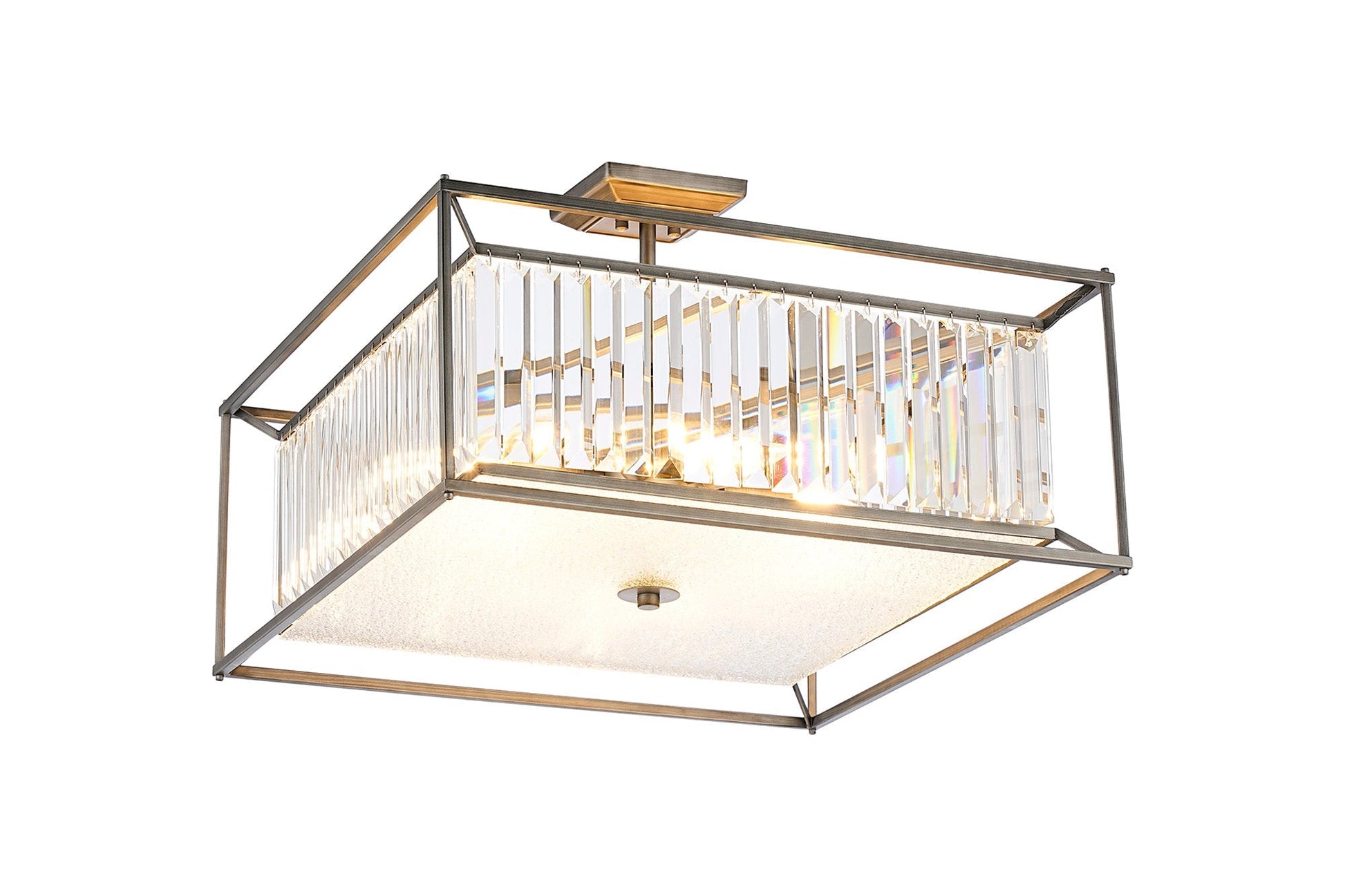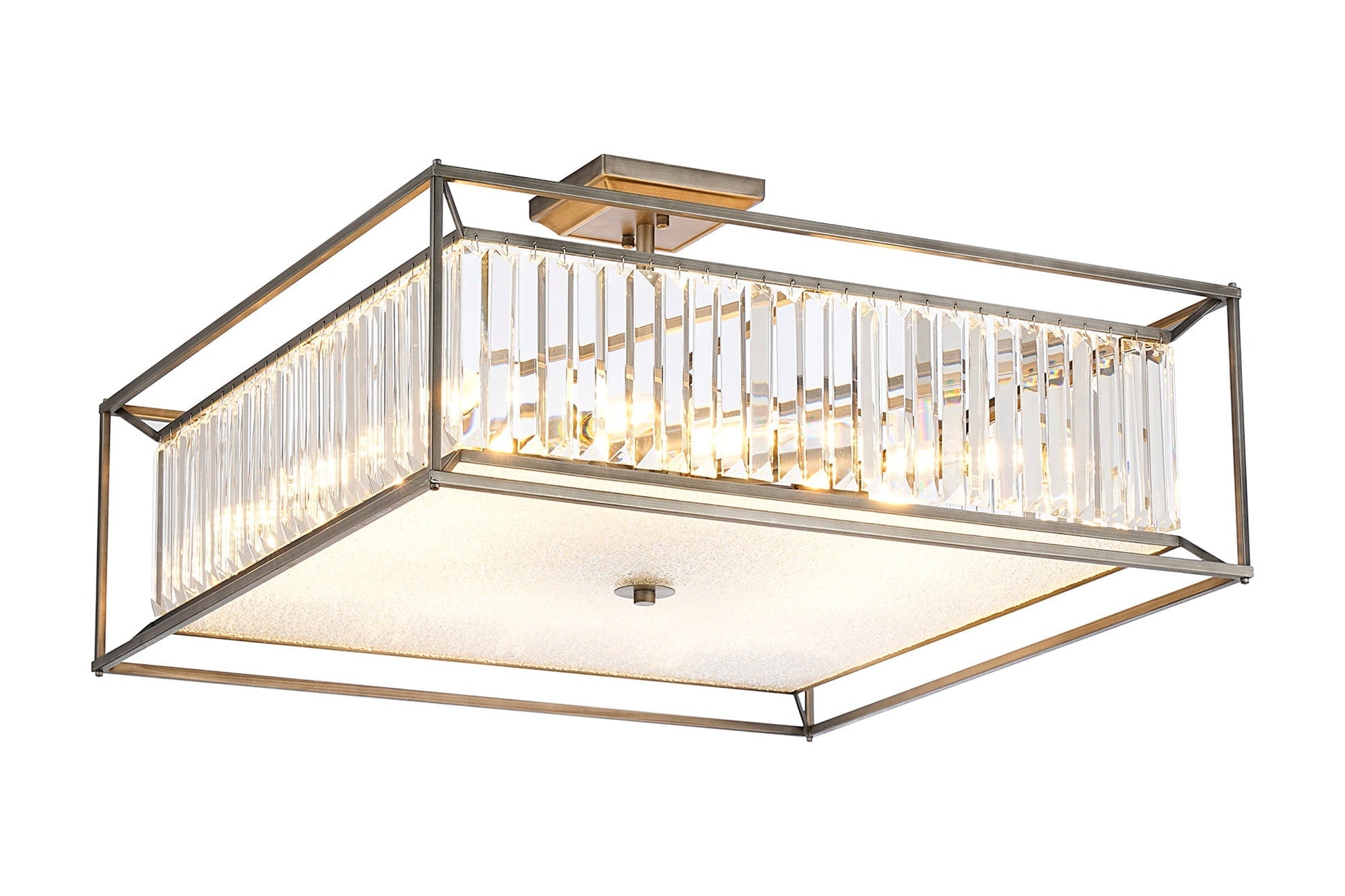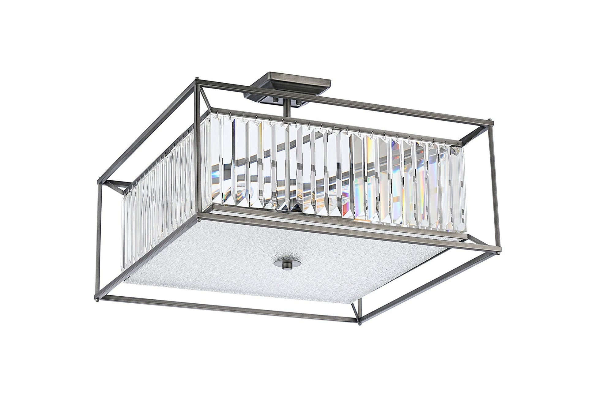 Attica Fixed Crystal Centre Ceiling Light/Semi Flush Light, 4/6/12Lt x E14, Pewter & Clear & Grain Glass