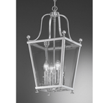 Traditionally styled lanterns in chrome finish or antique bronze ironwork with subtle gold highlights.