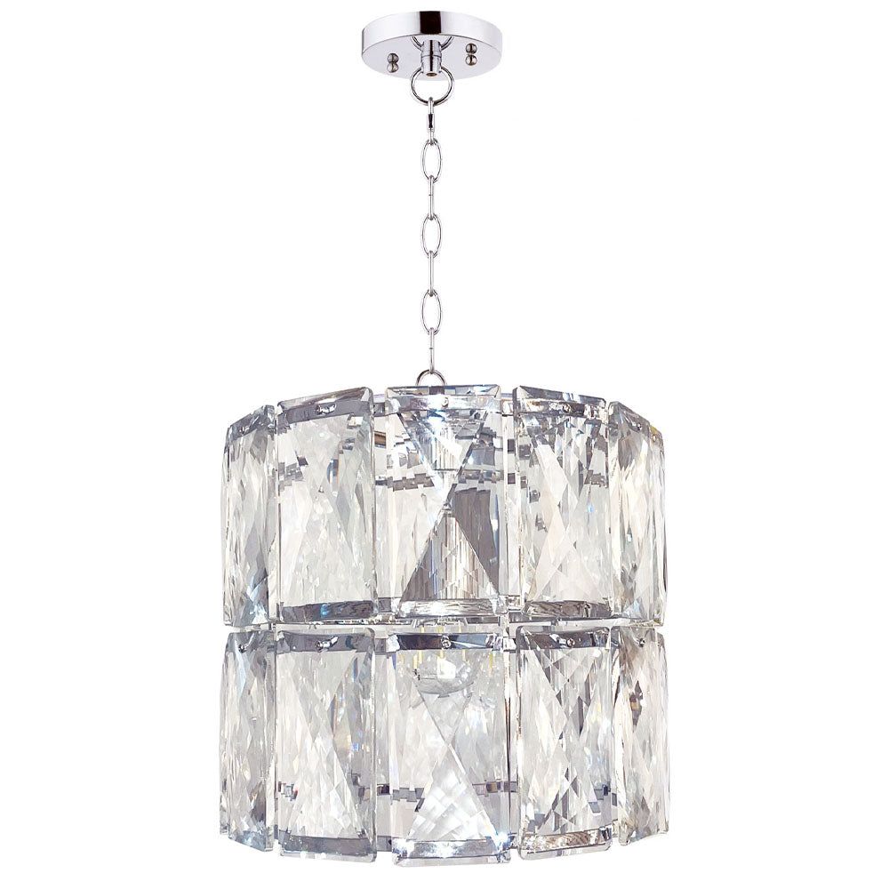The stunning Aurora Crystal Pendant is comprised of chunky faceted clear coffin crystals encased in a polished chrome trim. The luxurious crystal creates a beautiful sparkling effect when illuminated. The Aurora is available in a 3 Light and 5 Light Pendant and is fully LED compatible.