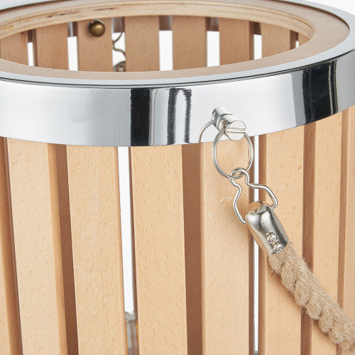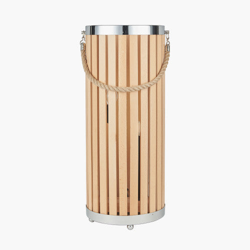 Bring some soft coastal styling into your home with our blonde wood slatted table lamp. The slatted design elegantly diffuses the light around the room, creating a cosy, homely atmosphere whilst the contrasting shiny nickel metalwork adds a contemporary twist.