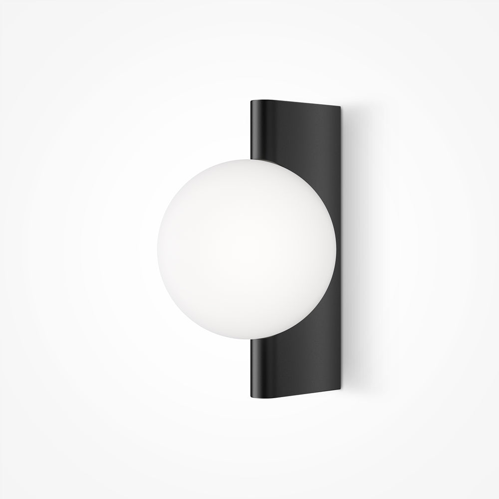 Metal fittings, shades — matte black, brass, chrome. Spherical dome lamp — glass, color — white. Hidden mount. Original geometry in design. Clear shady pattern.