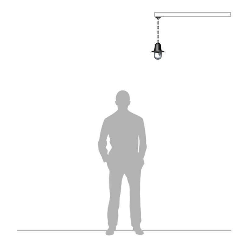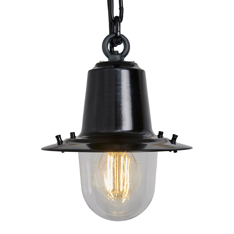 Classic railway style hanging light 0.33m in height with chain and ceiling rose.