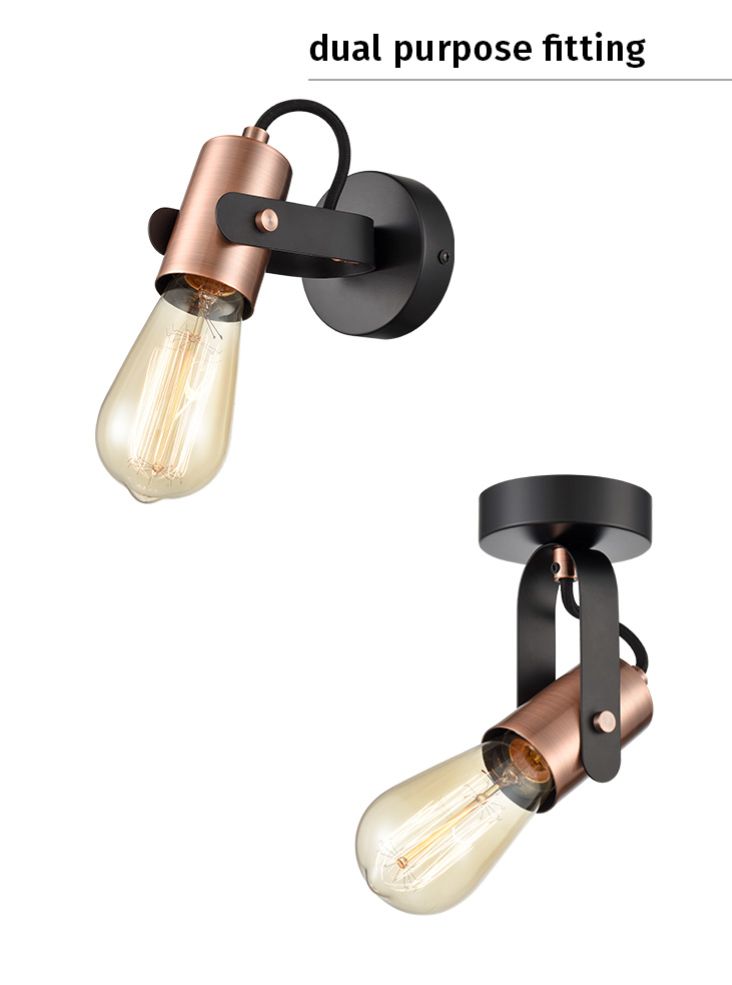 Azure 1lt Ceiling/Wall Fitting - Black & Copper