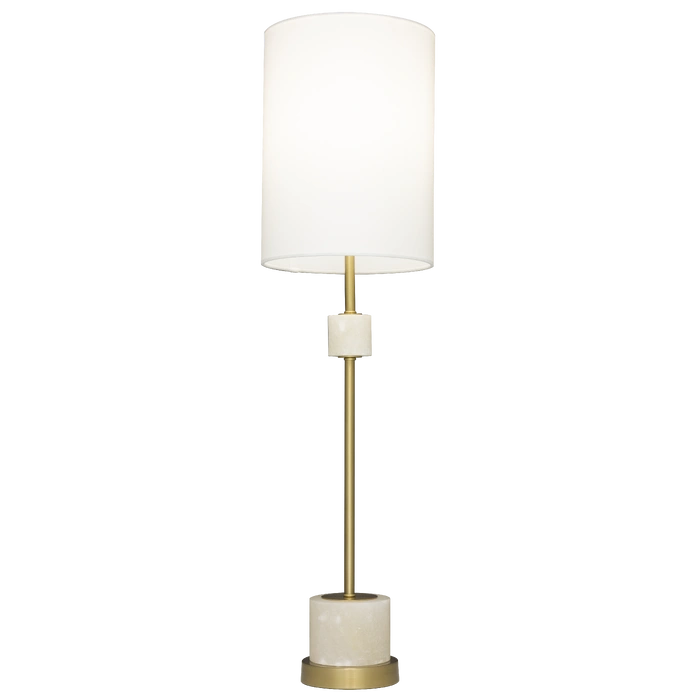 The Bari lamp is made of cylinder-shaped elements made of natural Spanish alabaster. The lamp base is made of metal with a brushed brass finish.
