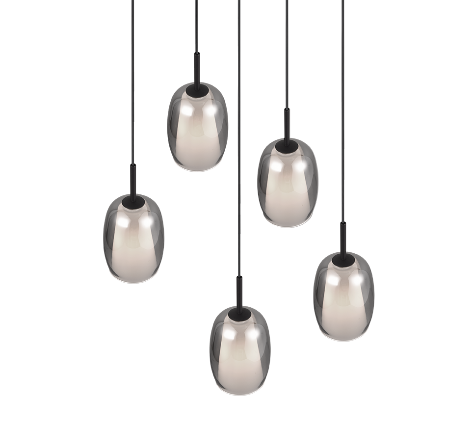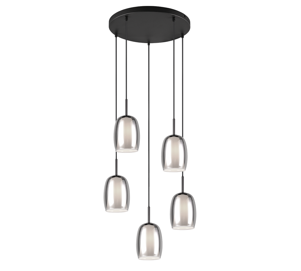 The BARRET pendant light sets stylish and decorative accents that perfectly reflect the current trend. With its two elegantly shaped glass lampshades per light source, it conjures up a particularly soft, atmospheric light above a dining or living room table. The use of black matt metal lends the light a timeless elegance, while the combination of the outer smoke-coloured glass shade and the inner white glass shade simultaneously radiates a touch of modernity. This allows the pendant light to blend effortlessly into a wide variety of interior styles. The use of LED light sources is recommended for energy-saving lighting. These are an ideal alternative to conventional halogen light sources and offer high light quality and energy savings of up to 80%. With LED light sources, you also benefit from a long service life and low heat generation while protecting the environment.