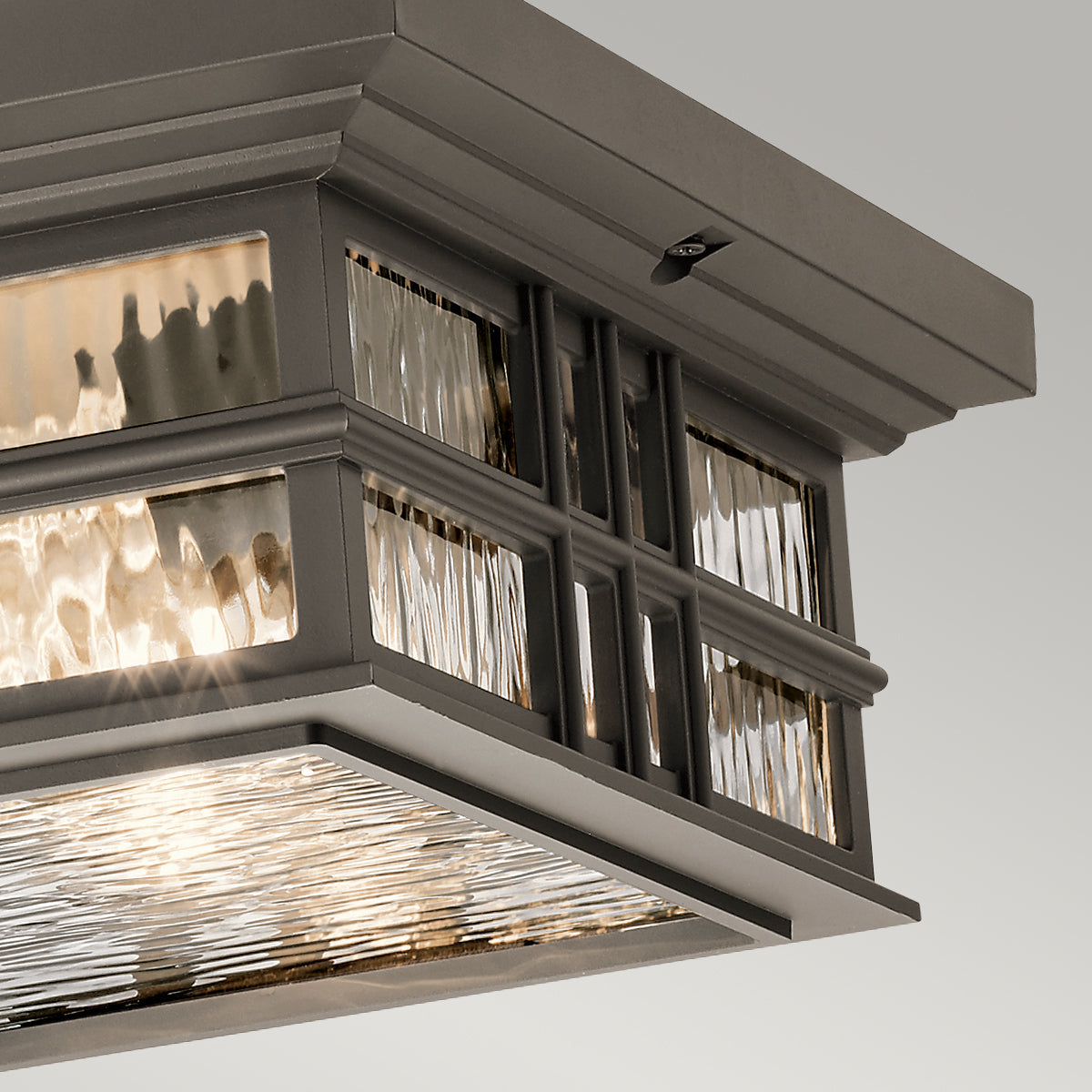 Inspired by classic craftsman architecture, the Beacon Square outdoor collection features clean lines, creating a transitional and versatile style. Crafted from a composite material, each fixture is designed to withstand harsh outdoor elements, like saltwater spray and UV rays, with a beautiful and long-lasting Olde Bronze or White finish. The clear, hammered glass simulates the look of water, enhancing the overall style, while still letting the light shine through.
