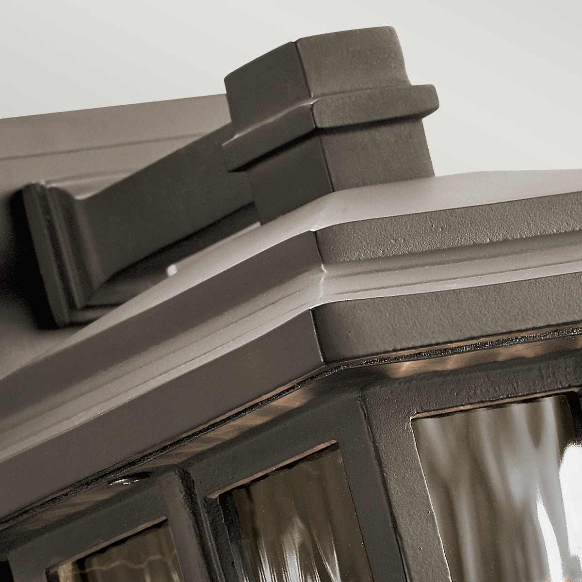 Inspired by classic craftsman architecture, the Beacon Square outdoor collection features clean lines, creating a transitional and versatile style. Crafted from a composite material, each fixture is designed to withstand harsh outdoor elements, like saltwater spray and UV rays, with a beautiful and long-lasting Olde Bronze or White finish. The clear, hammered glass simulates the look of water, enhancing the overall style, while still letting the light shine through.
