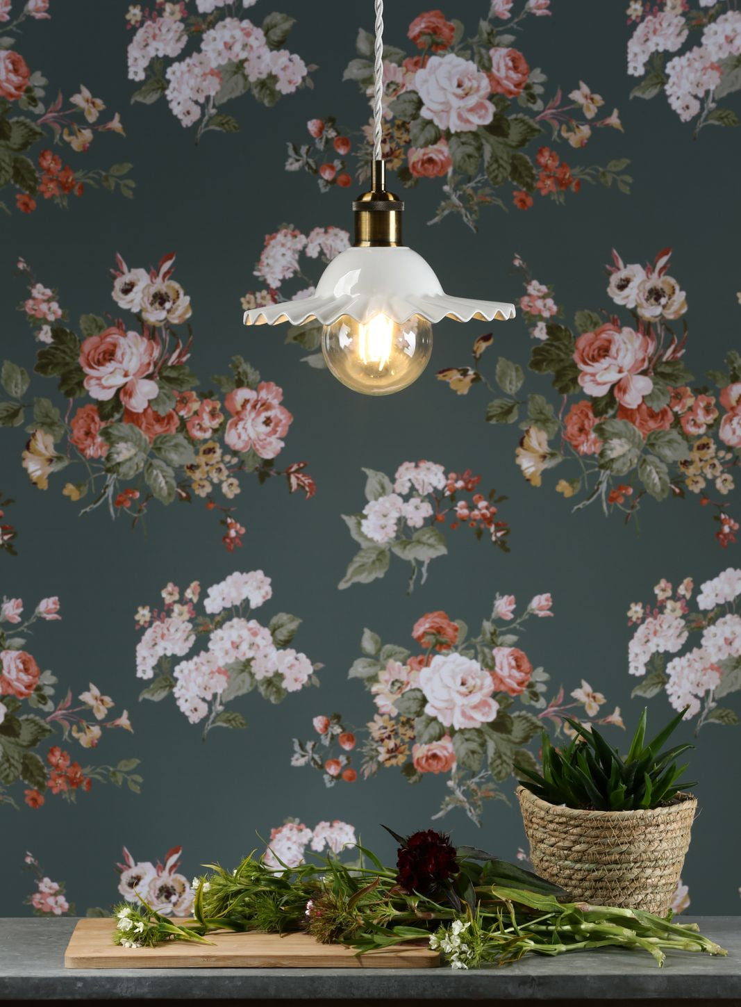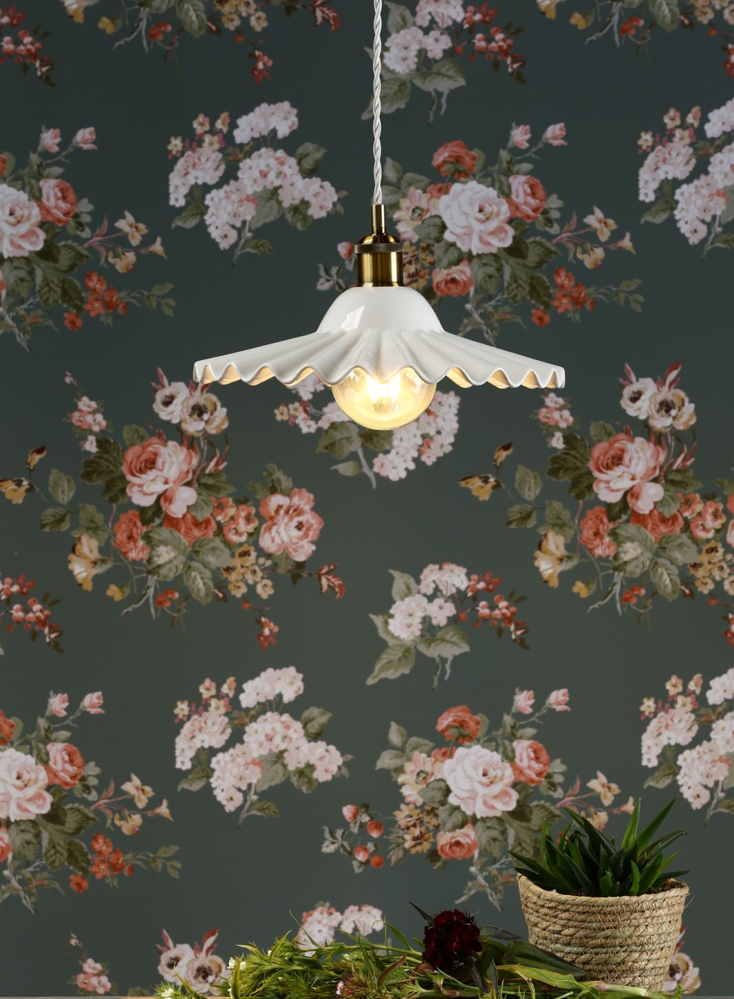 With pretty ruffled edges like a pie crust or dancer’s skirt, the Beca pendant ceiling light is a delight. This charming pendant shade is made of thick ceramic with a white gloss glazed finish. Also reminiscent of the undulations on a clam shell, the Beca is teamed with fittings in antique brass and a matching flat round ceiling rose. Upon fitting, you can adjust the length of the cream twisted braided-fabric feature cable to alter the height to suit your space (18–100cm); it is suitable for lower ceilings.