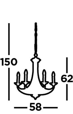 Takes 5 x 40 Watt max Small Edison Screw Candle Lamps - not included
