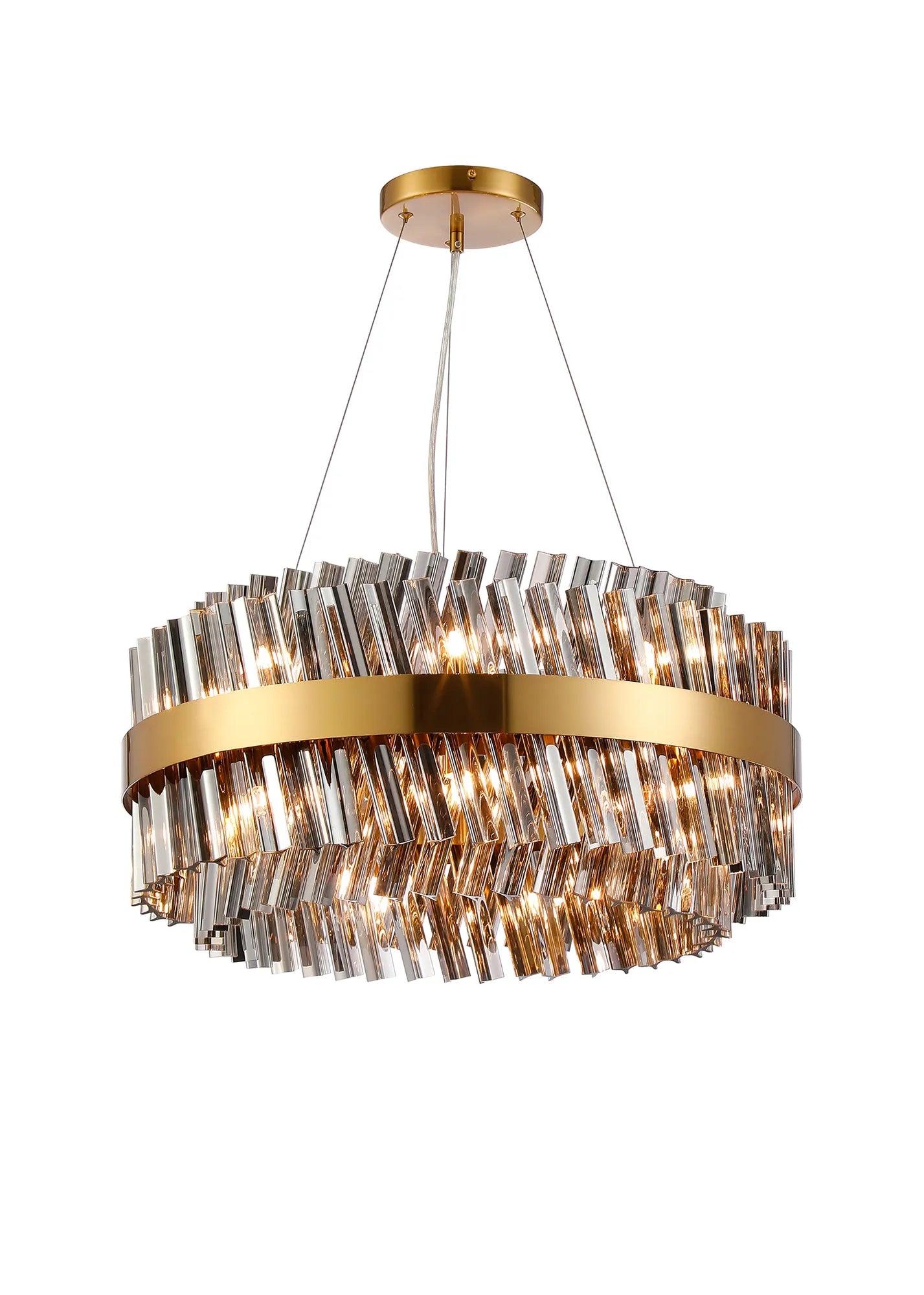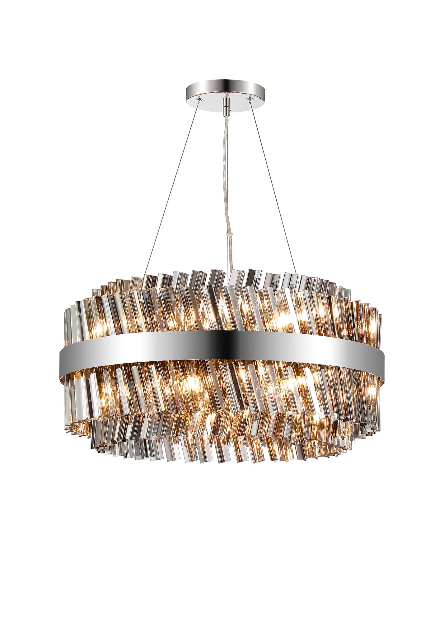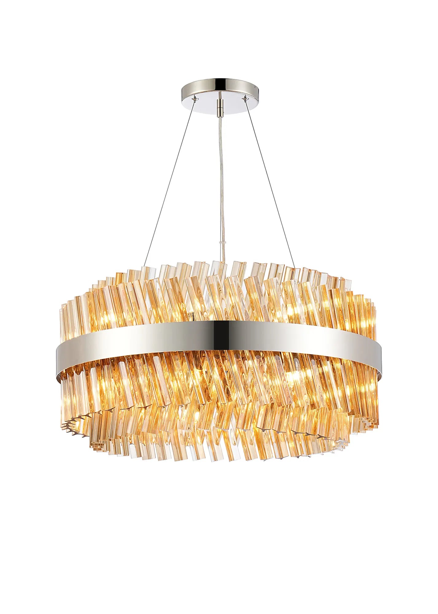 Bellina offers a wide variety of frame and glass colour combinations. Of the three frame colours; satin black, polished nickel and brass, there are an equal number of glass to choose from; clear, smoked or amber. One of the most unique selling points of this collection is the dual application of how the mixture of long and short glass are fitted to the lights, giving two visual options. Every frame from the pendants to floor lamps can situate the glass either all vertically for a clean cylindrical outline or at a diagonal angle creating a more uneven decorative effect.