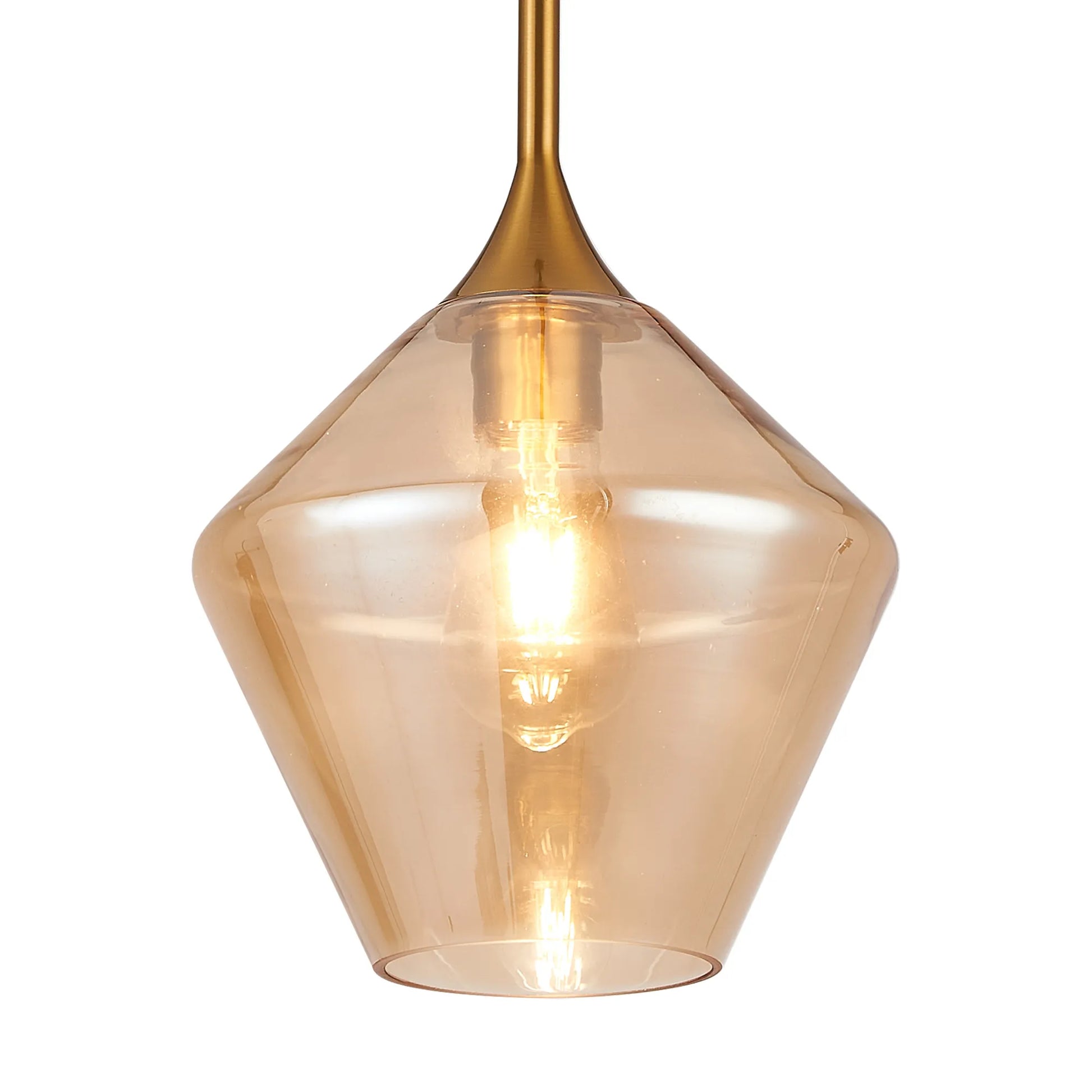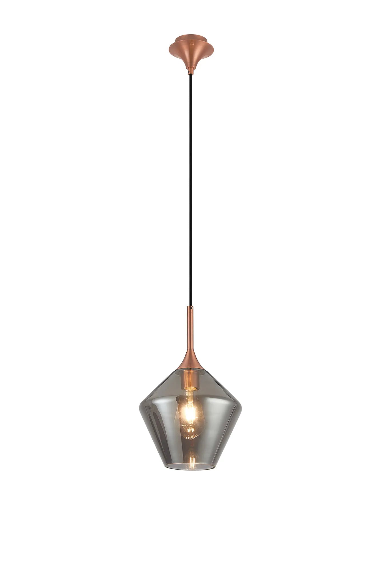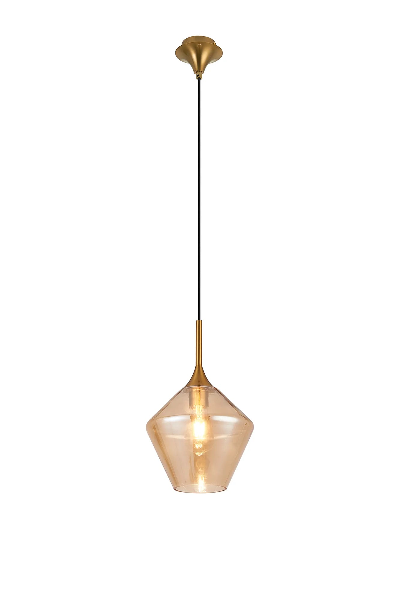 Brief Description | Benalla Single Pendant, 1 x E27, Brass/Smoke Wine Glass |