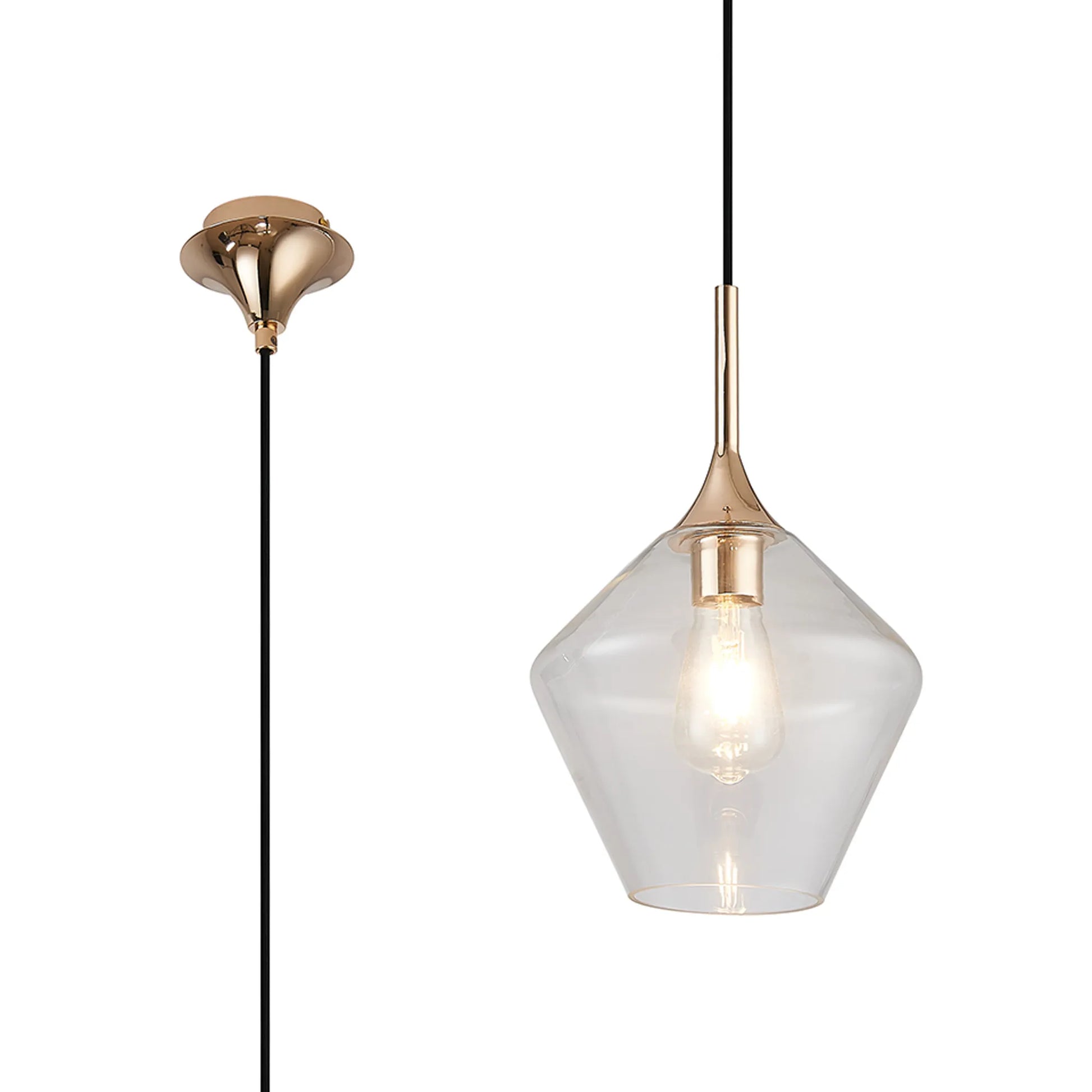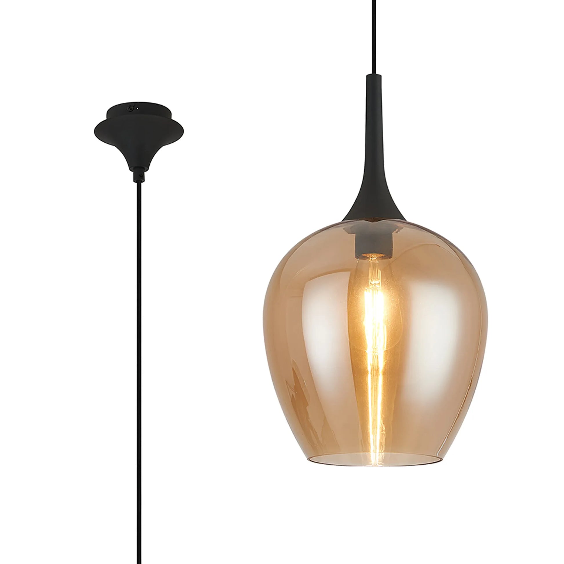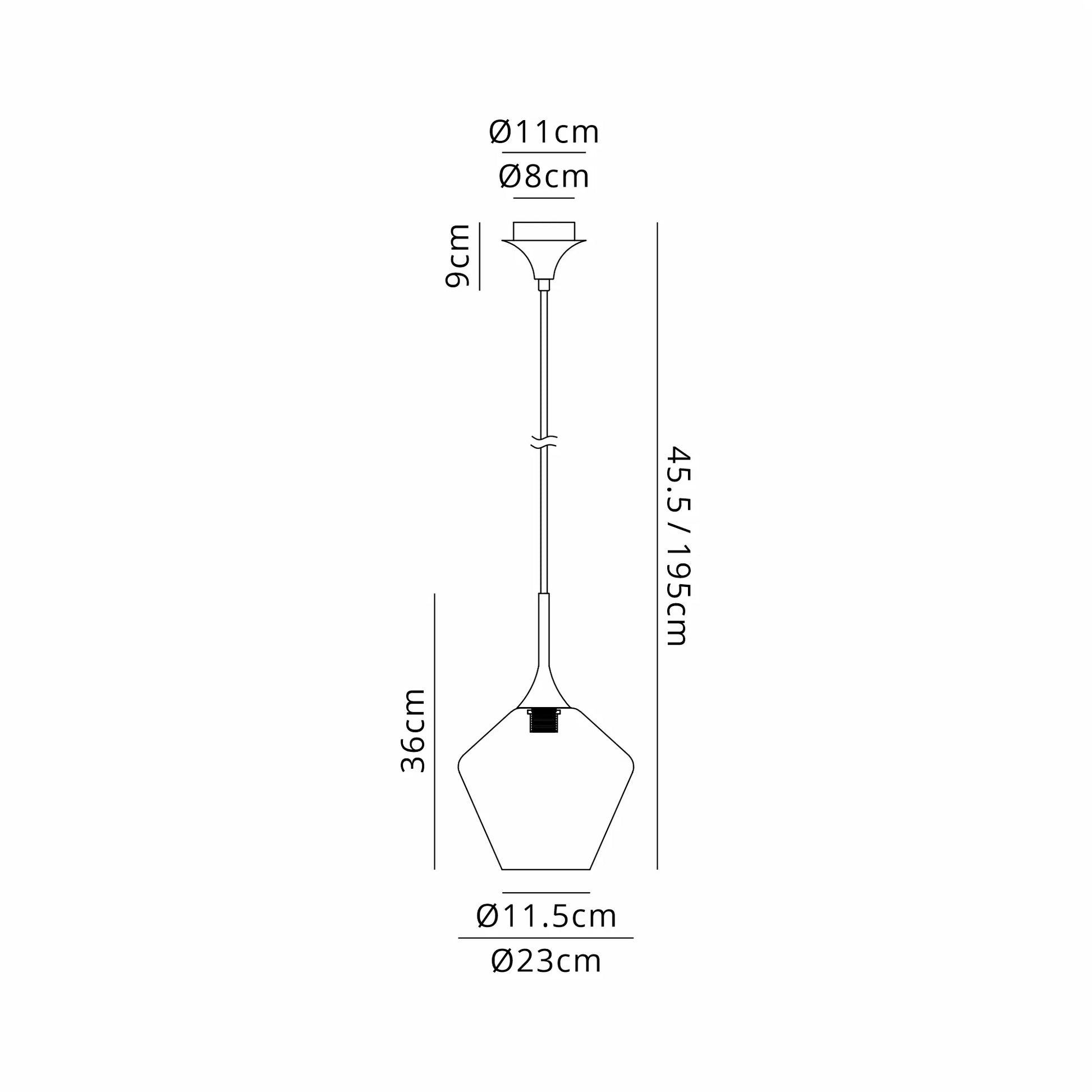 Brief Description | Benalla Single Pendant, 1 x E27, Brass/Smoke Wine Glass |