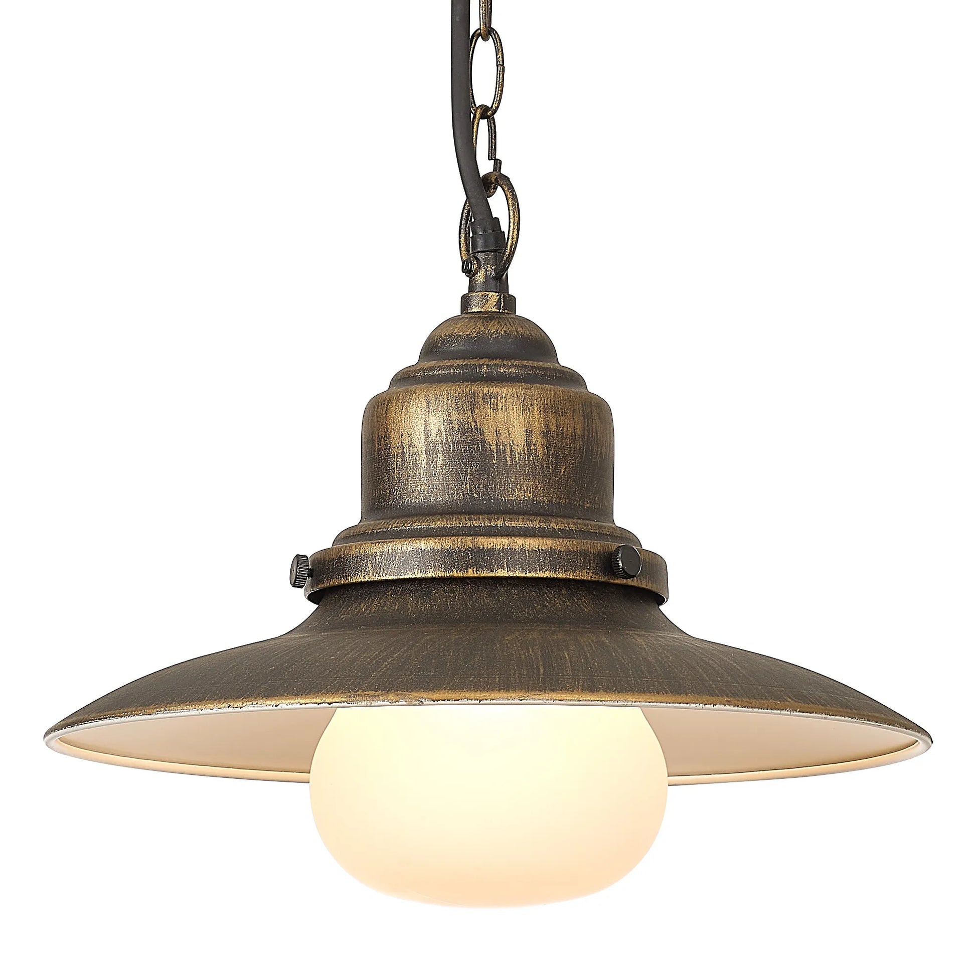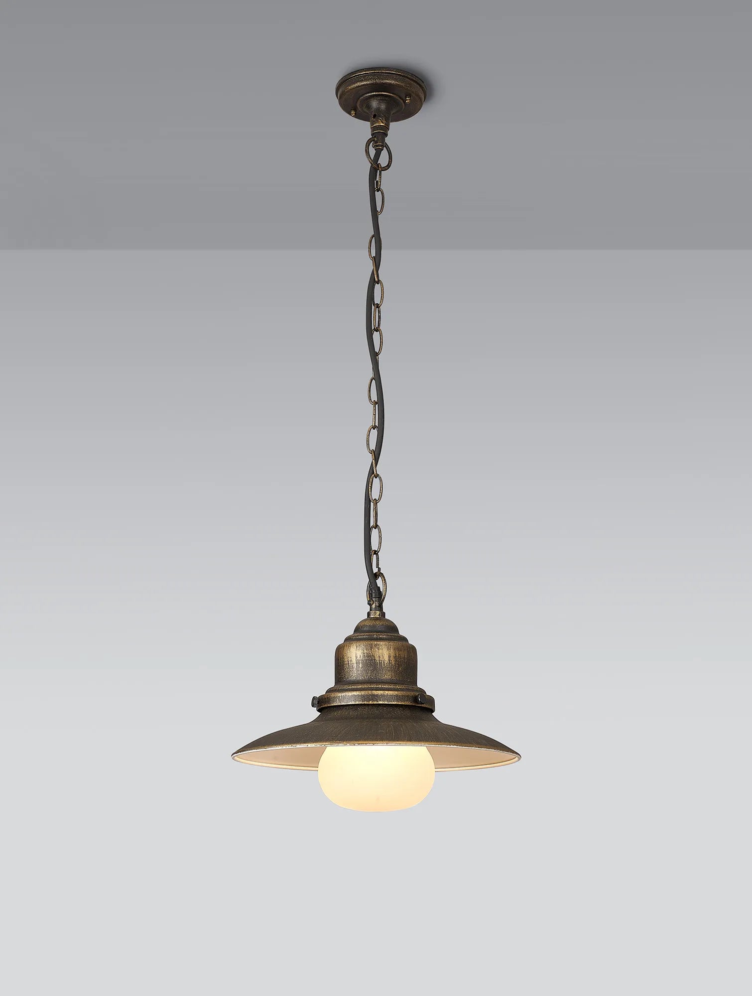 An IP44 collection that represents traditional antique lighting concepts. Martell ornate effect stems from the curvature of the shallow metal shades. The E27 lamp holder on both the pendant and wall lamp are safely concealed within an oval, opal shade that also creates an even dispersal of illumination from your chosen lamp. Martell is available in two colour finishes; black/brushed gold or dark grey/black.