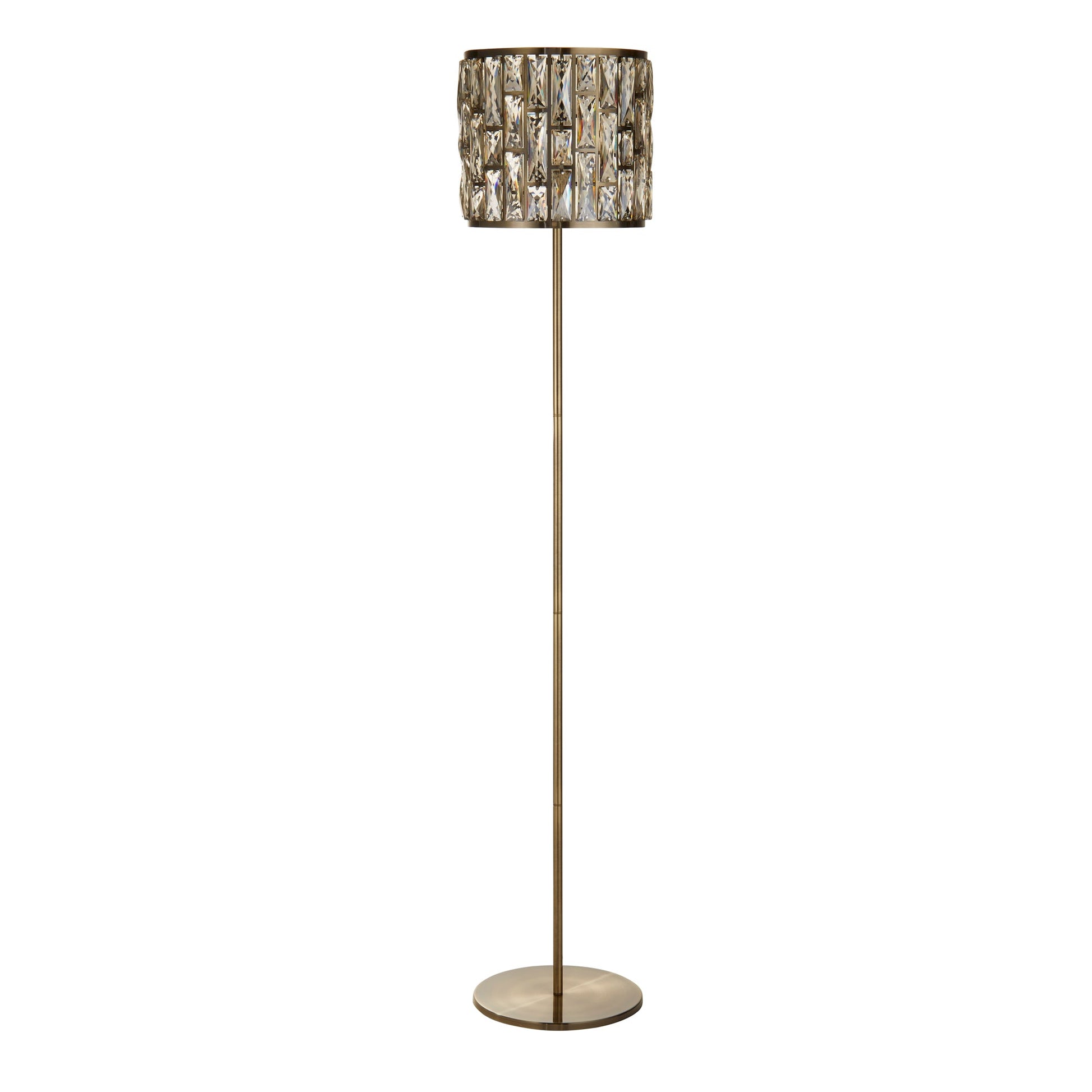 Bijou Floor Lamp - Antique Brass Metal/Chrome Metal & Champagne Glass E27