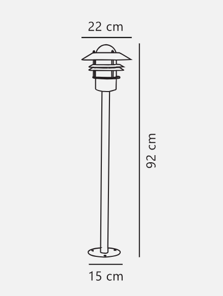 Category Specification IP Rating IP54 Number of Sockets 1 Max Bulb Wattage 60 W Voltage 230 V Class Class 2 (Double insulated) Dimmable Yes (with dimmable bulb) Parallel Connection Yes Glass Colour Clear Seaside Suitable Yes Warranty 15 years Height 92.0 cm Tube Diameter 3.5 cm Shade Diameter 22.0 cm Base Dimension 15 cm Weight 2.137 kg