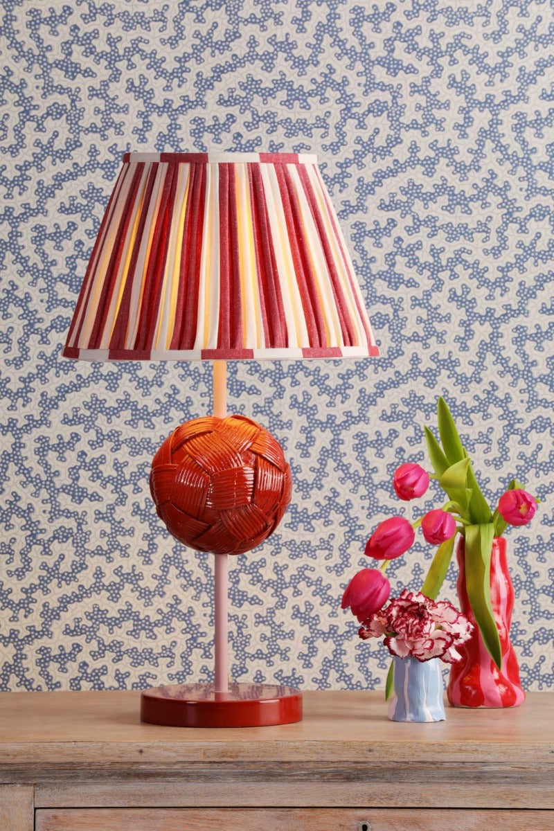 This addition to our Bodkin collection features an intricate basket weave design. Featuring a contrasting matt stem set in high gloss core and base, destined to make a strong impact in any interior scheme. Available in our seventeen carefully curated paint colours, this enables you to create a truly bespoke piece. Shown with either our bespoke Empire Shades or handmade pleated gathered shades, to be ordered separately.