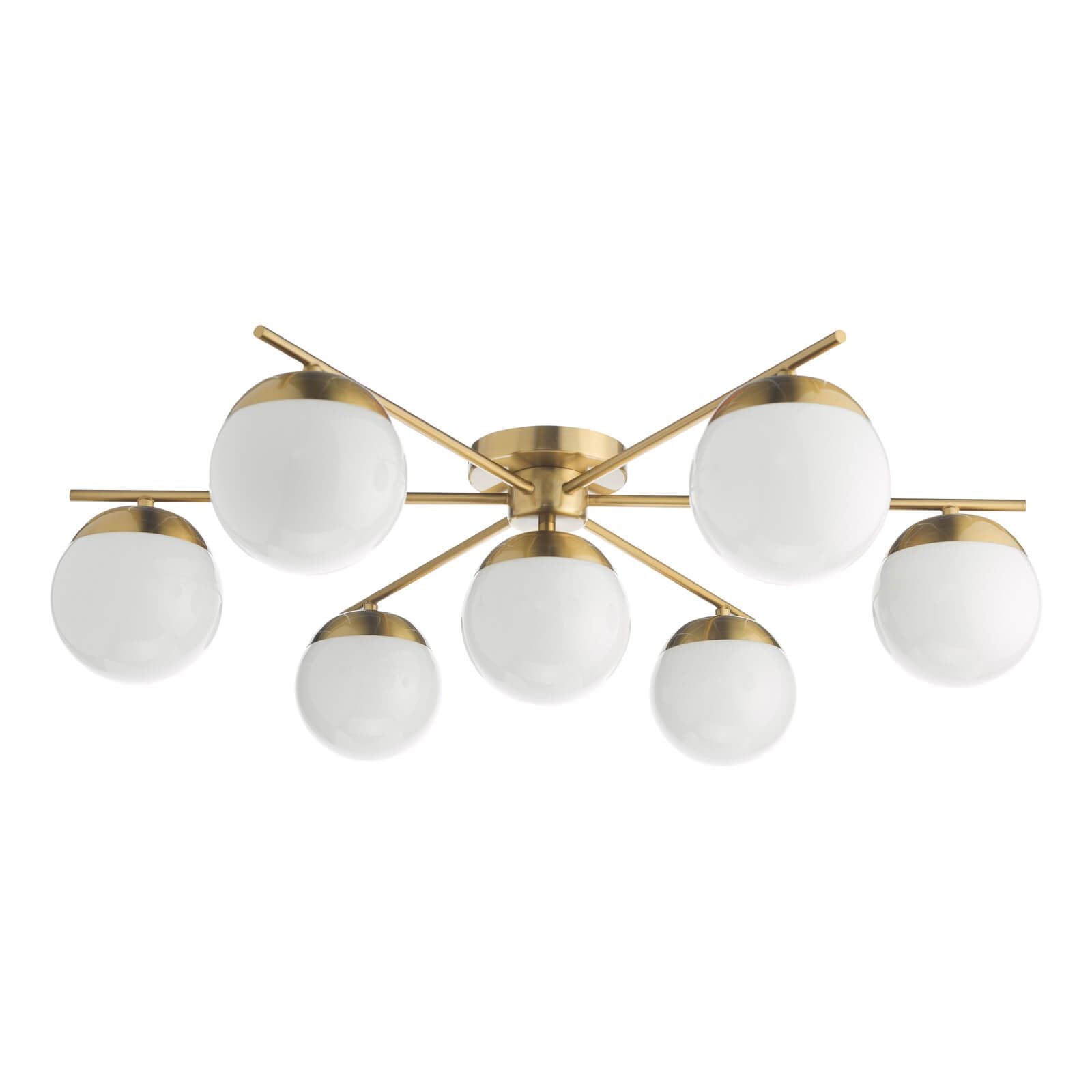 Bombazine 7Lt Semi-Flush, Natural Brass & White Opal Glass