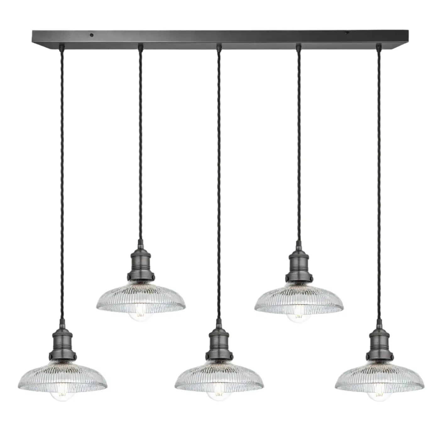 5 x single pewter bulb holders (Each with 2m /79" of black twisted fabric flex connected to the holder only, enabling height to be adjusted - electrician required)