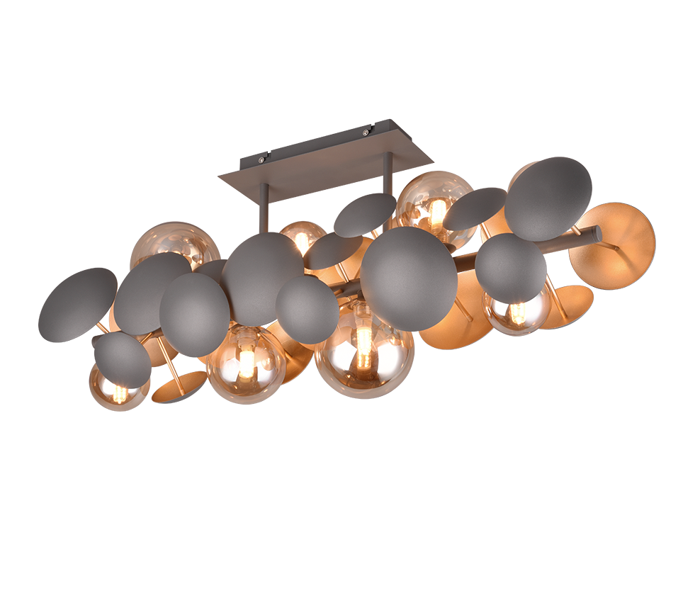 The lights in the BUBBLE range create remarkable accents with a wow effect in your living area. The ceiling light unfolds its extraordinary effect particularly impressively in the bedroom or living room and plays with light and shadow thanks to its unmistakable design. The unique design of the light is emphasised by the material combination of white glass and gold-coloured metal.