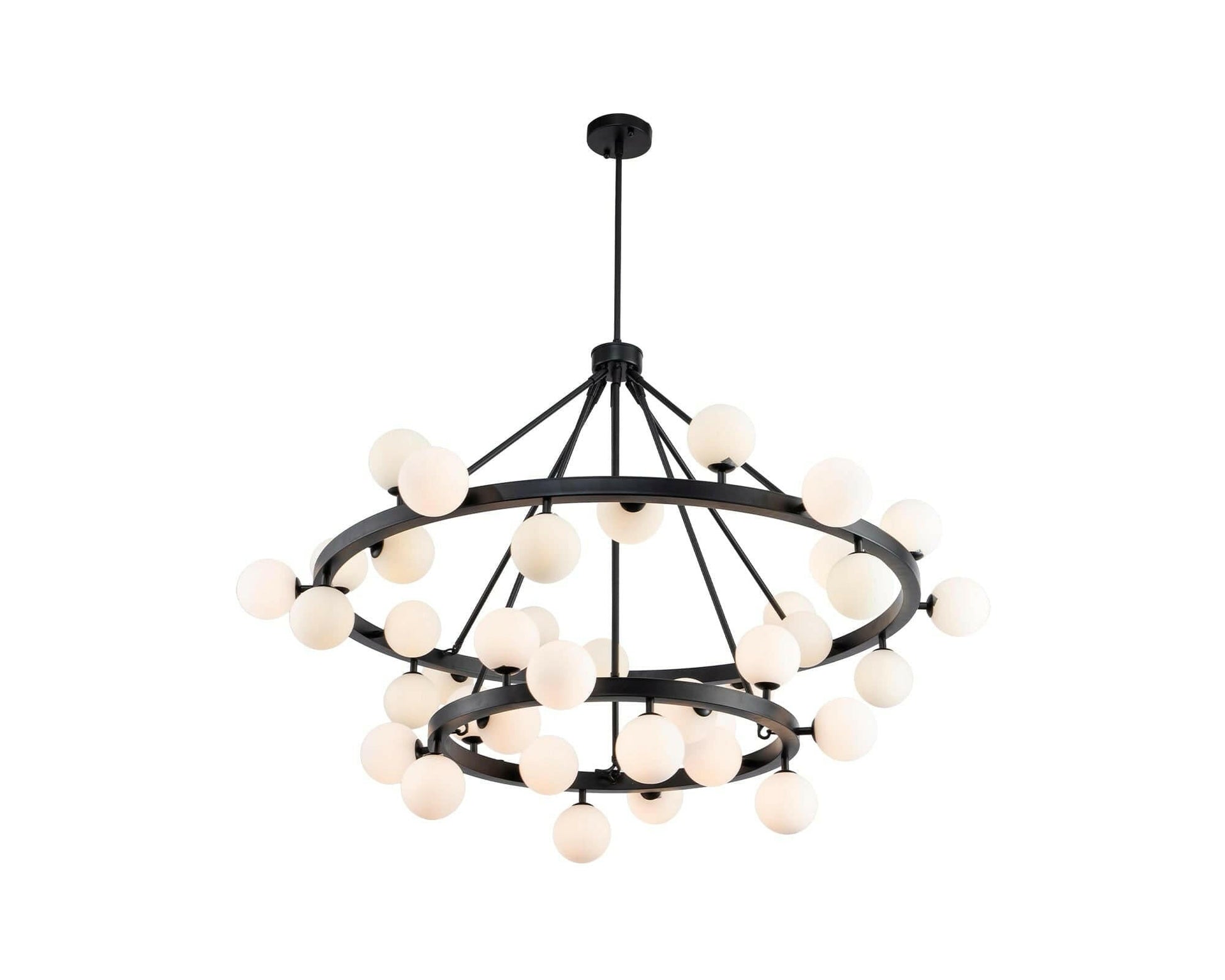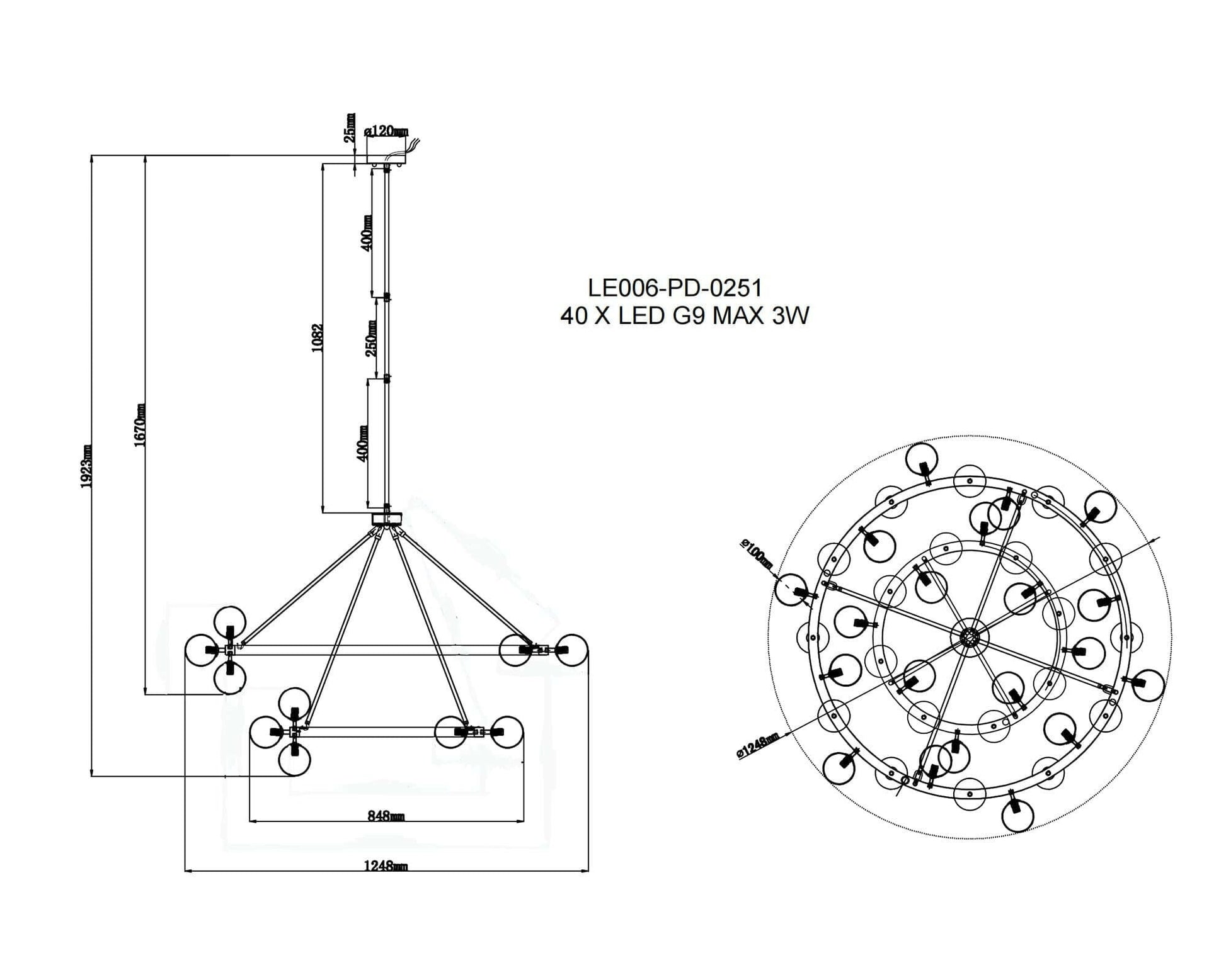 Enhance your interior with this Matt Black Metal frame, White Glass Accessorise your space piece, complete with the discerningly decorative Bucolic Pendant Lamp. A versatile accessory for a range of settings, this Pendant lamp would serve as a chic lighting feature for any room from a luxurious lounge to a fine foyer. Please note light bulbs are to be purchased separately.. Requires 24 × LED G9 MAX 5W.