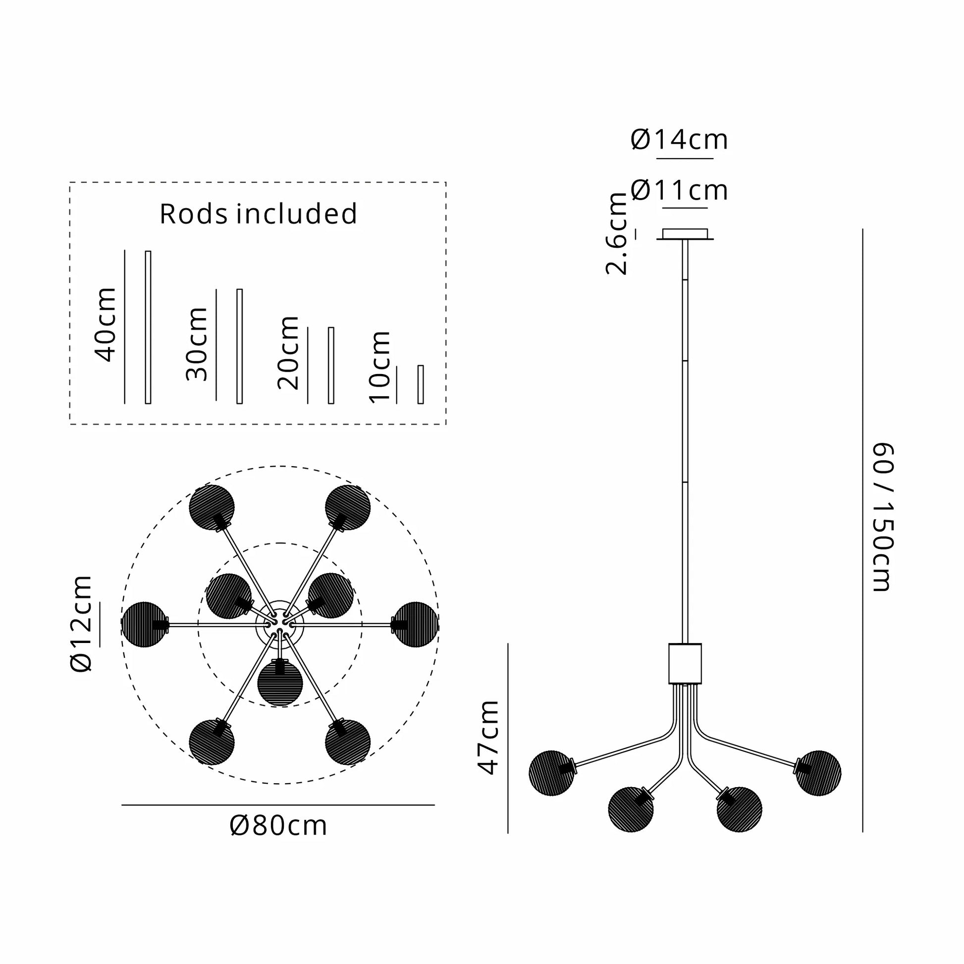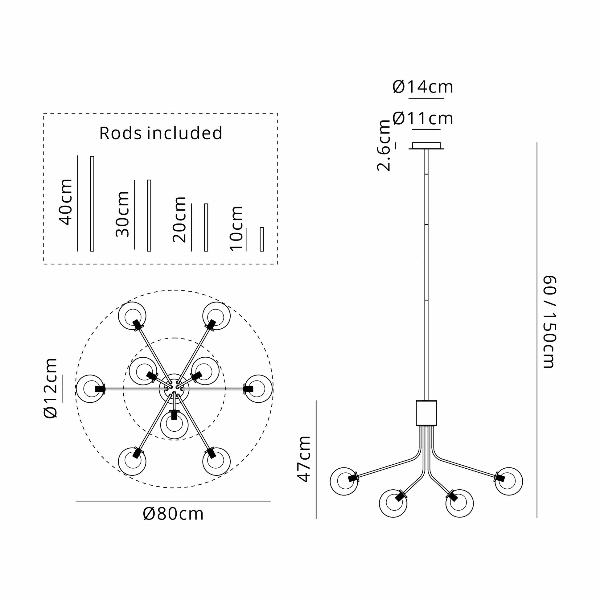 Caledon Fixed Pendant, 9 Light G9- Various Finishes
