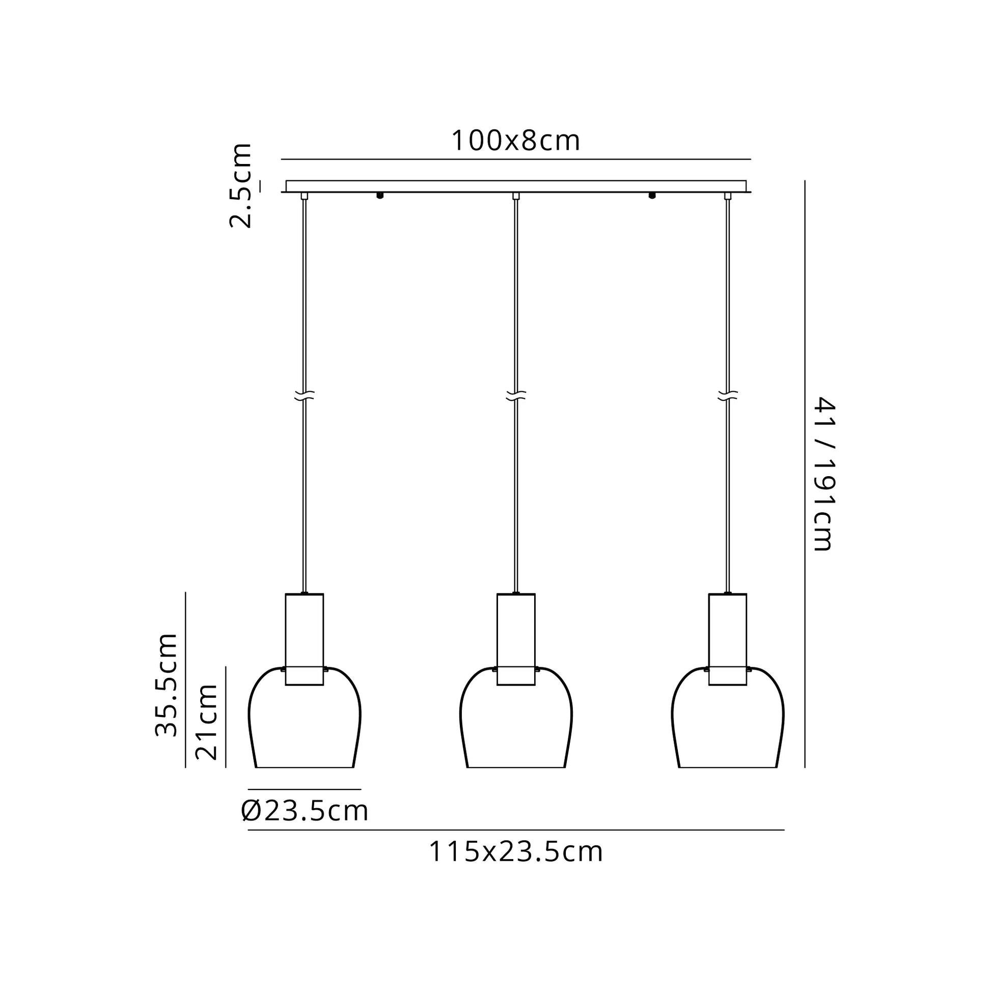 Camden 3Lt Linear Pendant- Various Sizes & Finishes