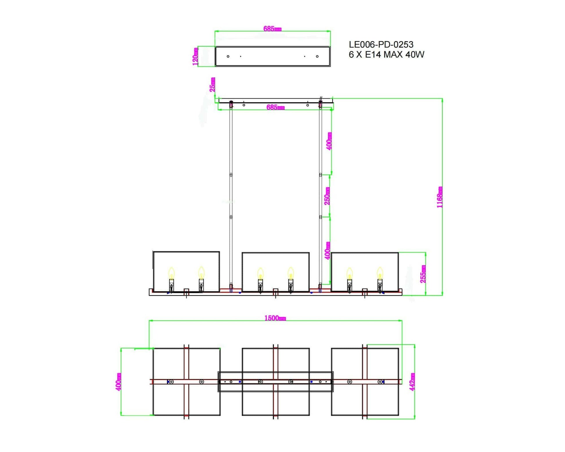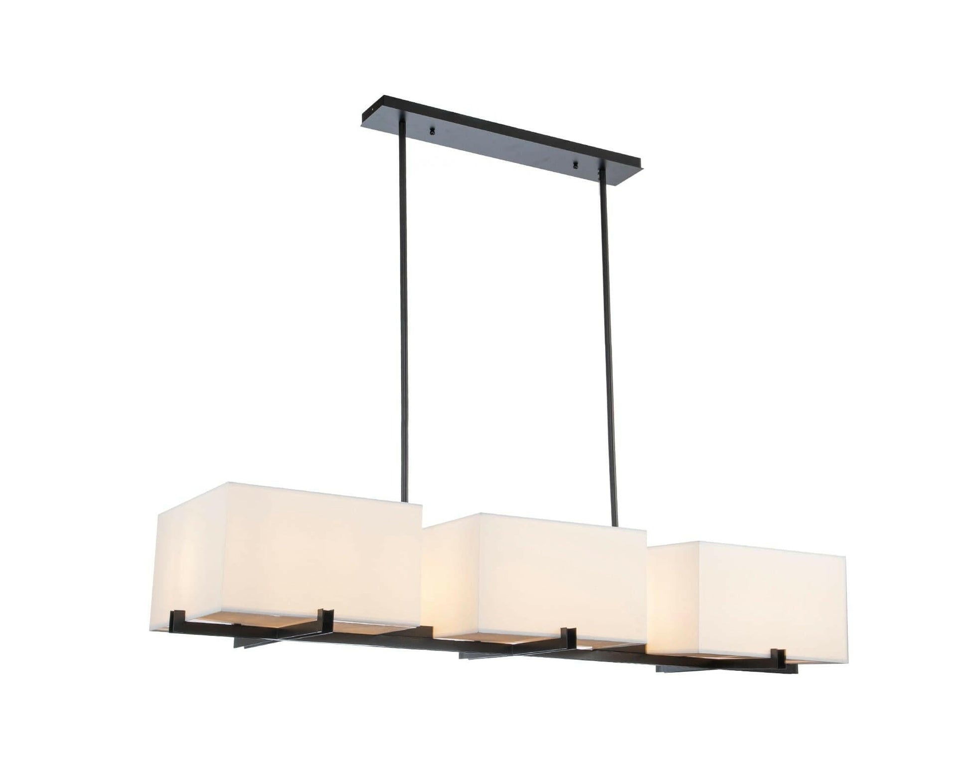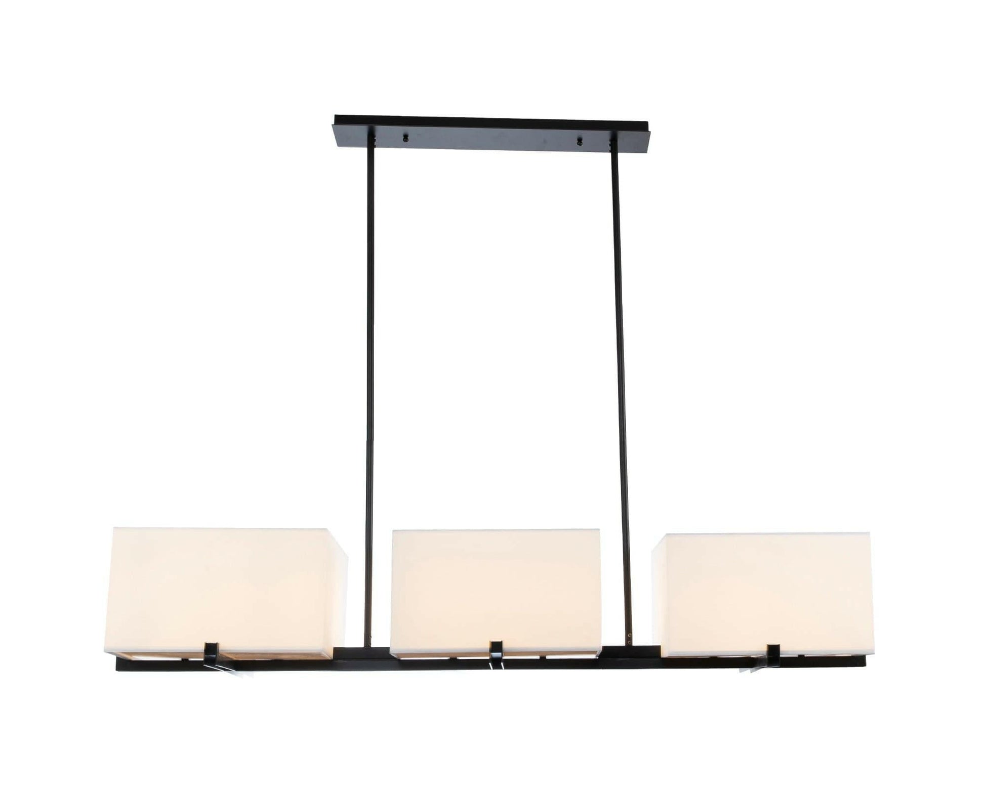 Enhance your interior with this Matt Black Metal Frame, White Glass The elongated dimensions of this pendant light give it an elegant appeal making it ideally suited for above a long dining table or breakfast bar. A wonderfully classic three-shade pendant light, this piece is a modern pendant lamp instilling your interior piece, complete with instant glamour. A chic colour palette of sophisticated black and white glass shades. Please note light bulbs are to be purchased separately.. Requires 6 × E14 MAX 40W.