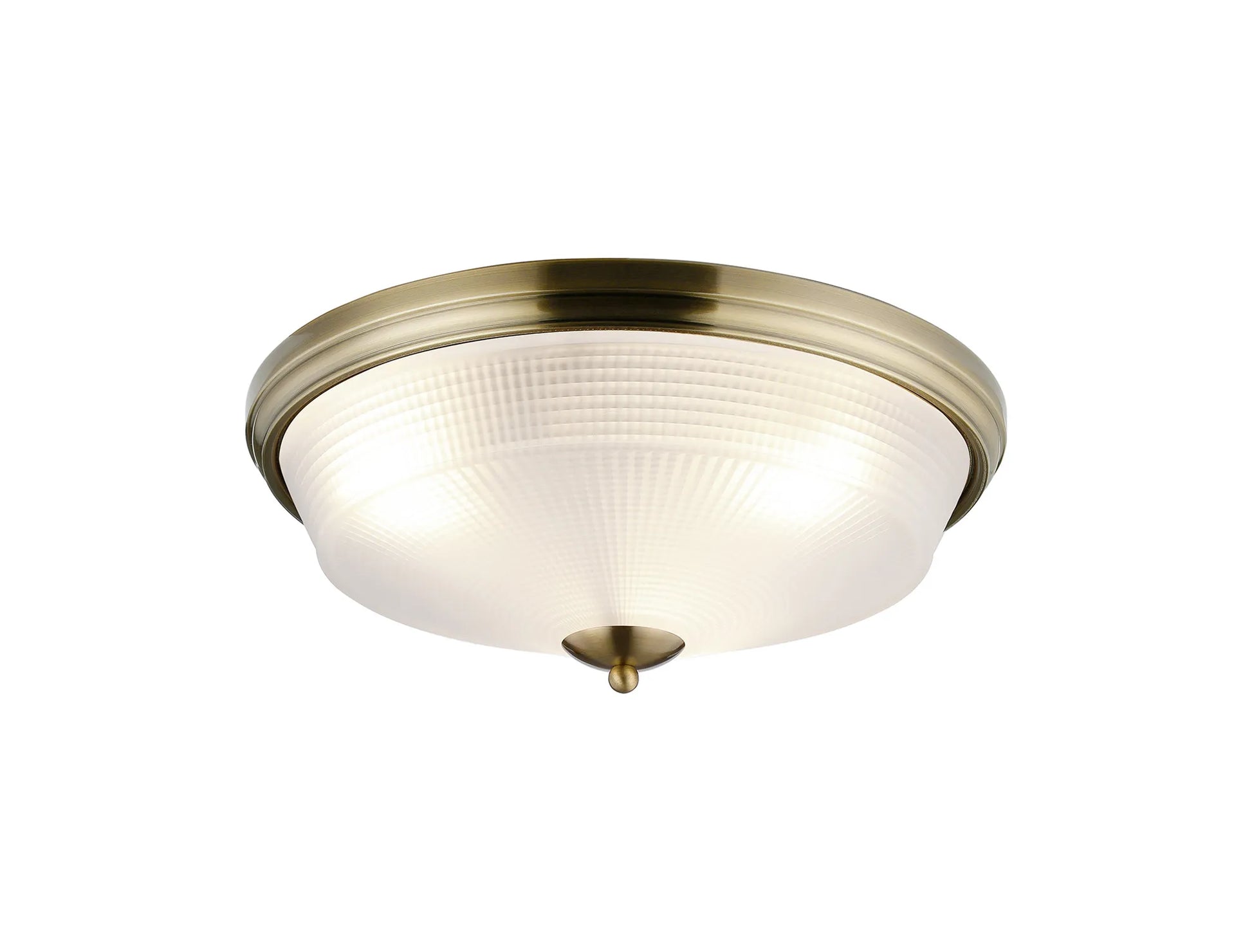 Cleron 2 Light E27 Flush Ceiling Light, Antique Brass, Satin Nickel, Polished Nickel / Prismatic Glass