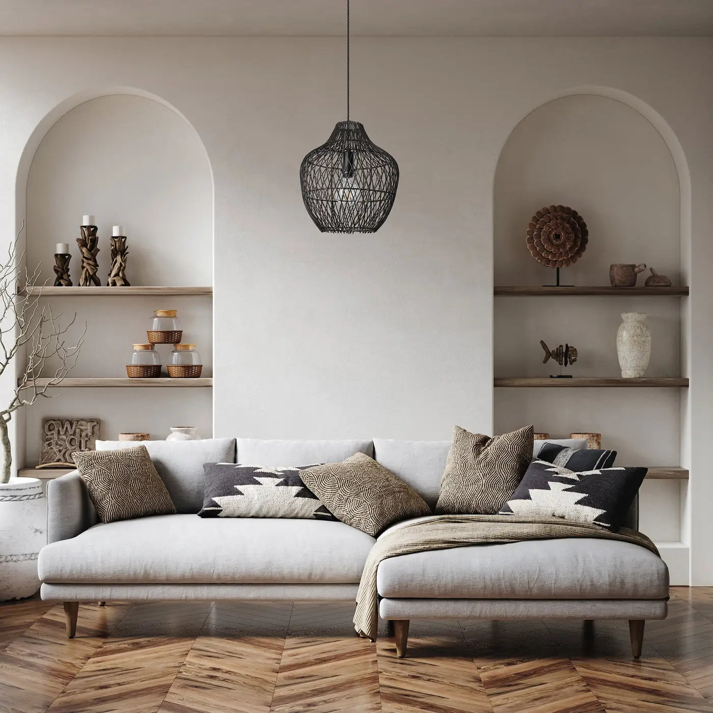 Coastal Rattan Ceiling Pendant Light - 14 inch - Pear