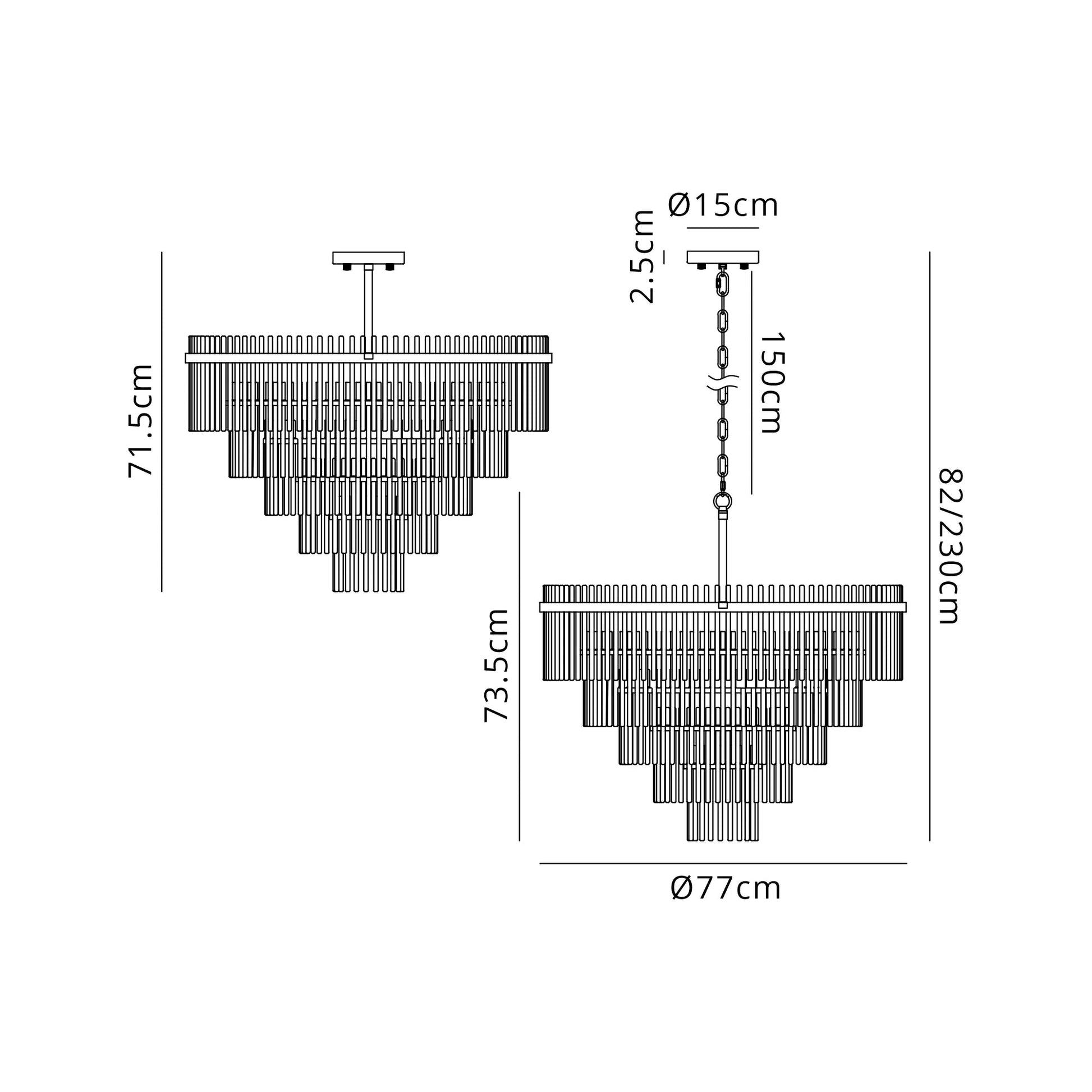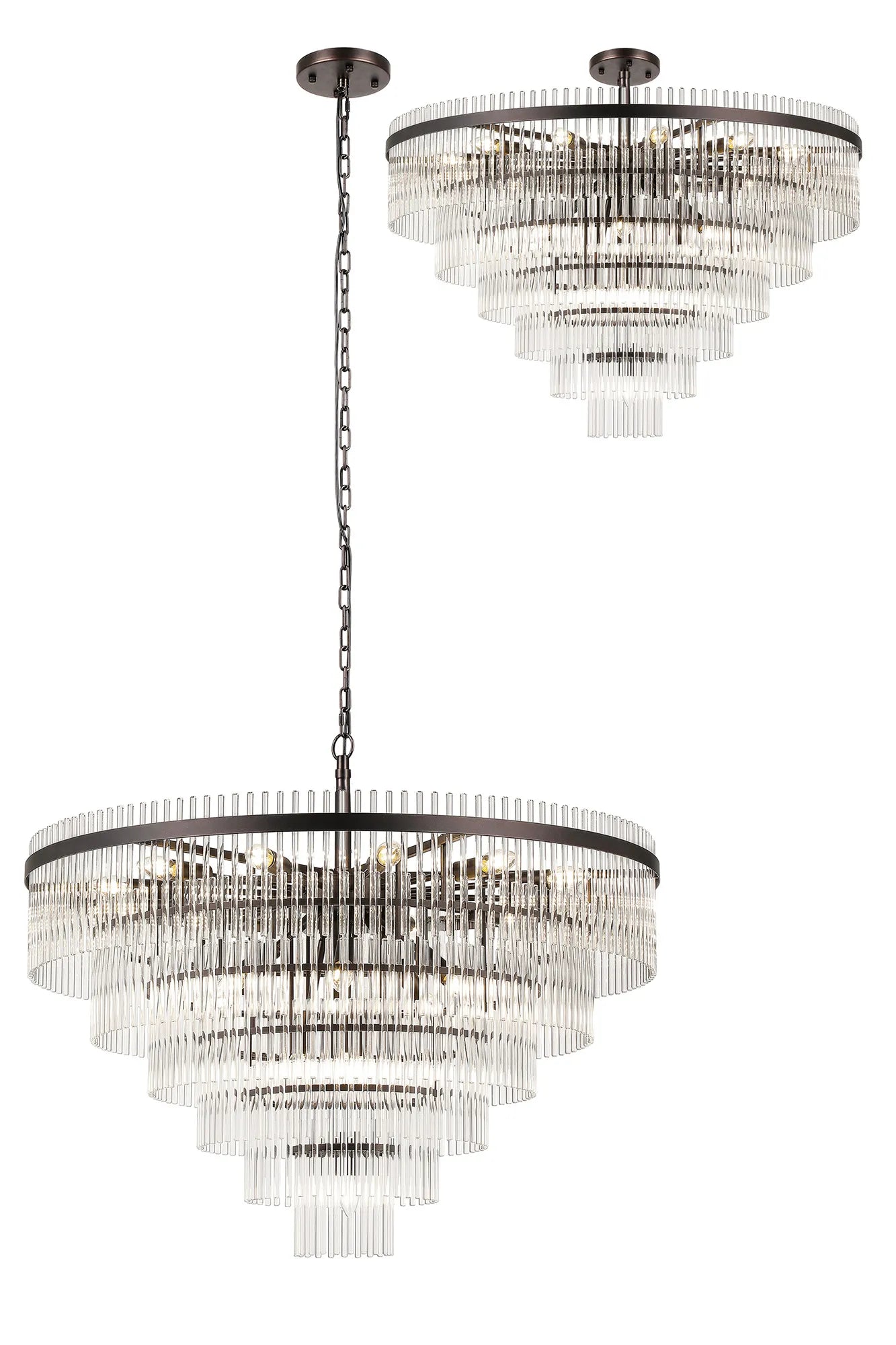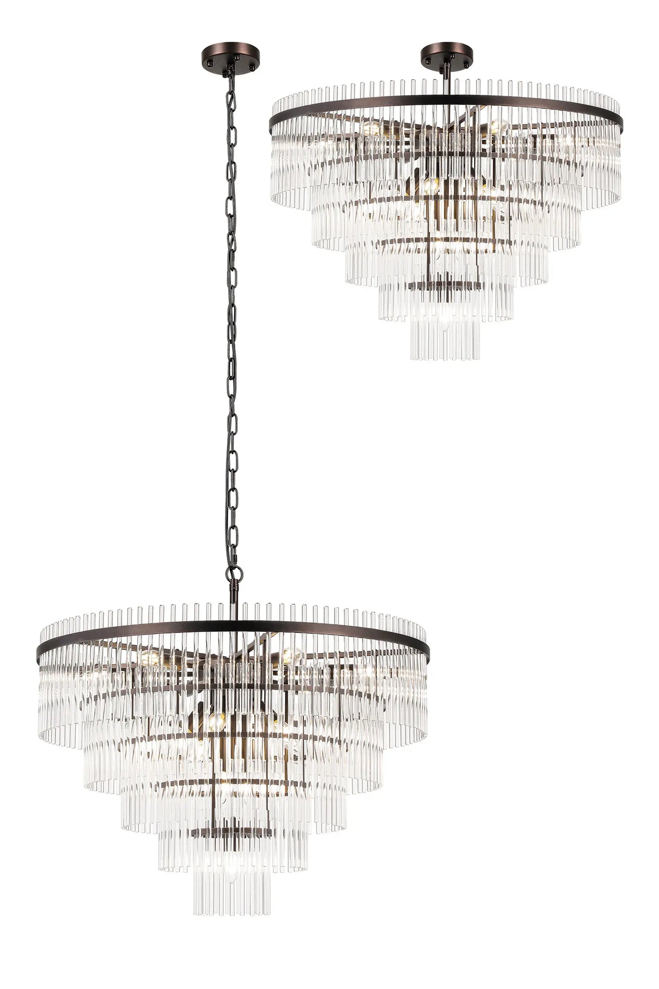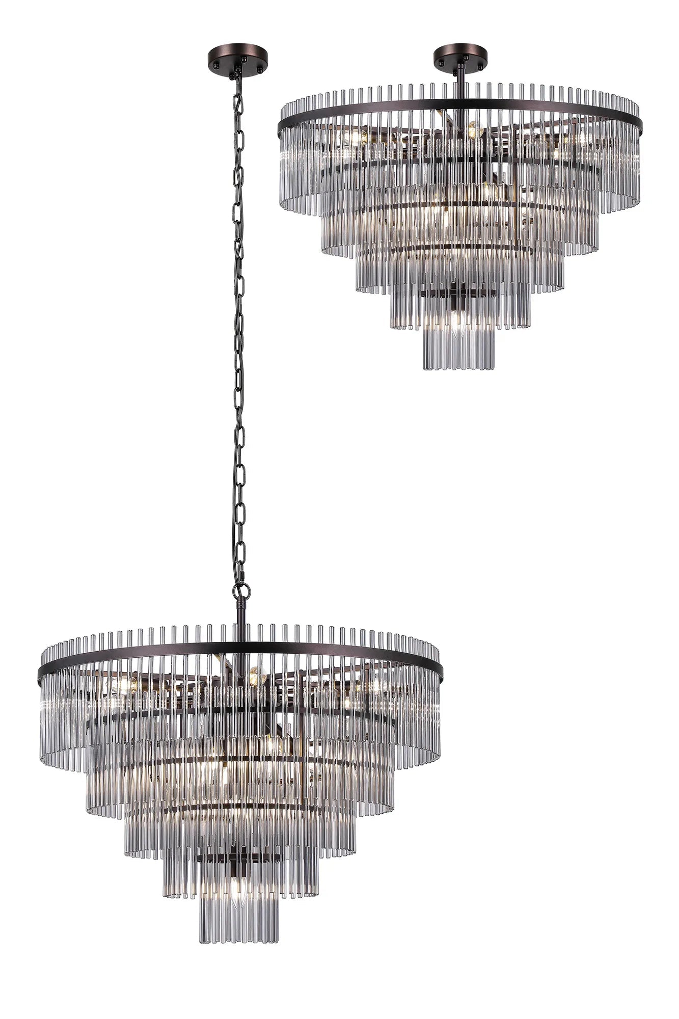 Brief Description: Colmar 77cm Pendant/Semi Ceiling 15 Light E14, Brown Oxide/Smoke Glass Rods