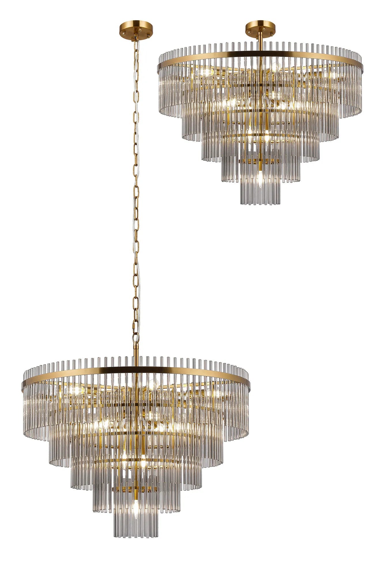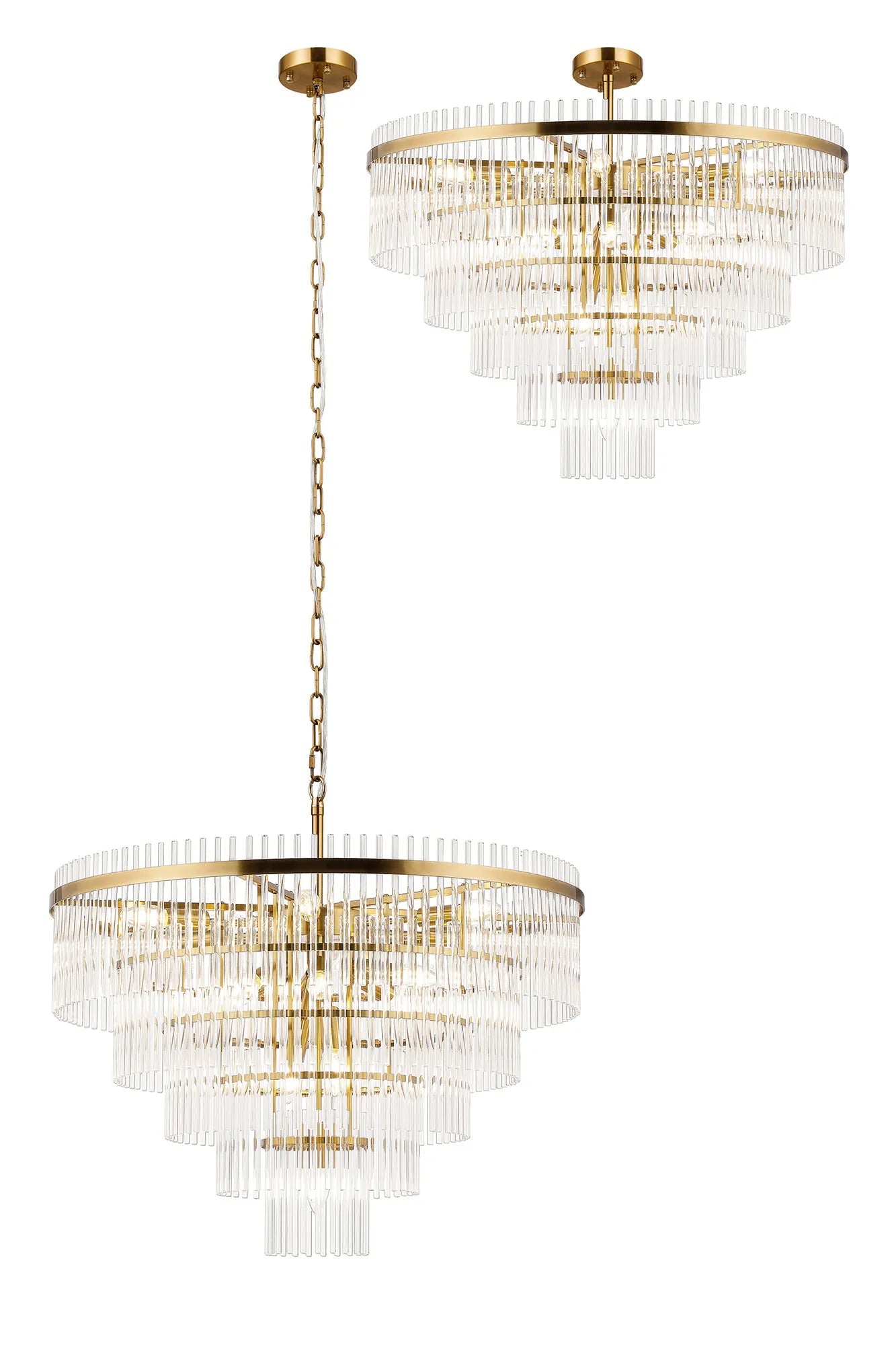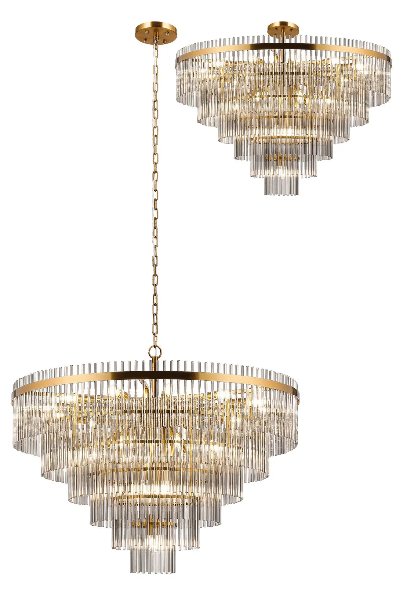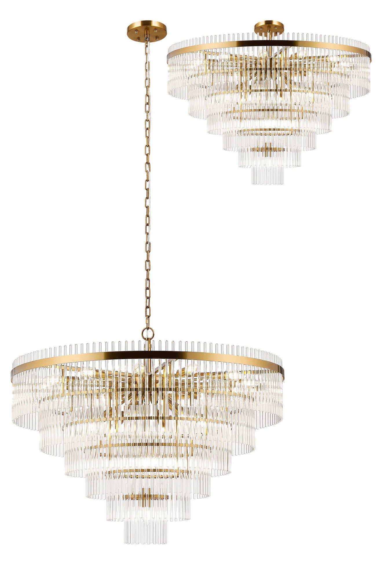 The Colmar range features a versatile selection of light fittings designed to accommodate various spaces and preferences. With options available from four light to twenty-two light configurations, there are ample choices for both small and large areas. The collection is complemented by a matching wall light, providing a cohesive look throughout your space. The fixtures come in a unique brown oxide or brass finish, adding a touch of elegance and character. You can choose between tiered clear or smoked glass options, allowing you to customise the ambiance and style to suit your preference. The Colmar range provides the perfect lighting solutions for any environment.