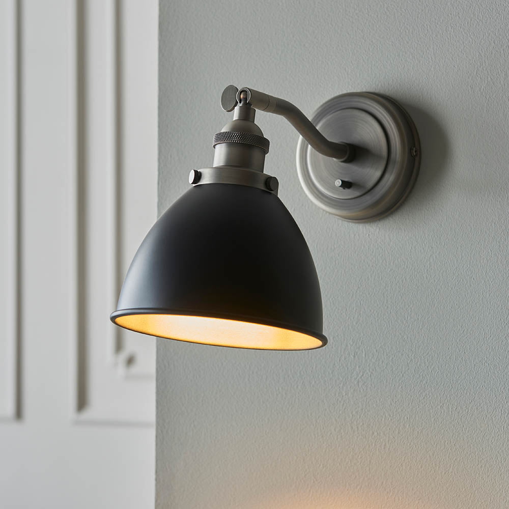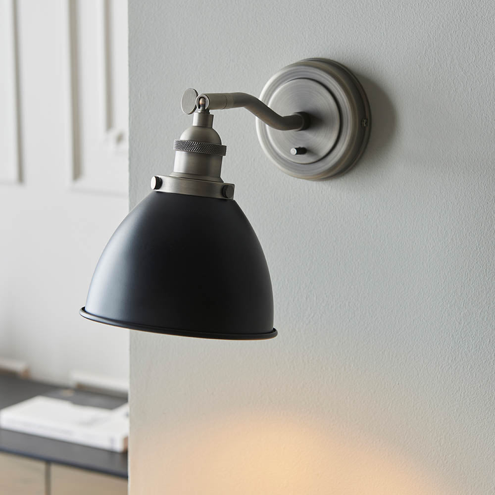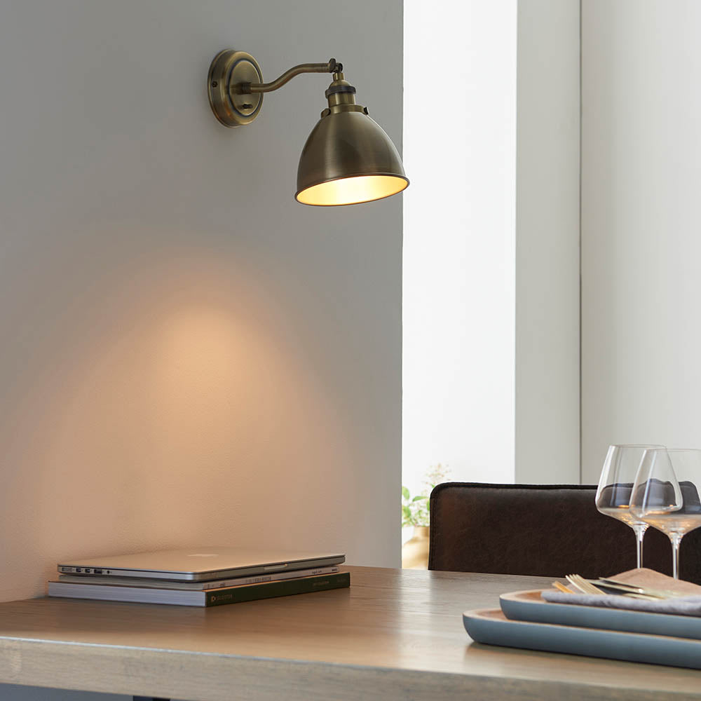 An authentic 'resto' style adjustable wall light, finished in vintage stone colour paint with antiqued brass plated details. Featuring an adjustable knuckle and accessible on/off switch, pair this wall light with filament LED lamps for that perfect industrial style. The perfect addition for today's stylish homes to create that on trend bar, bistro look.