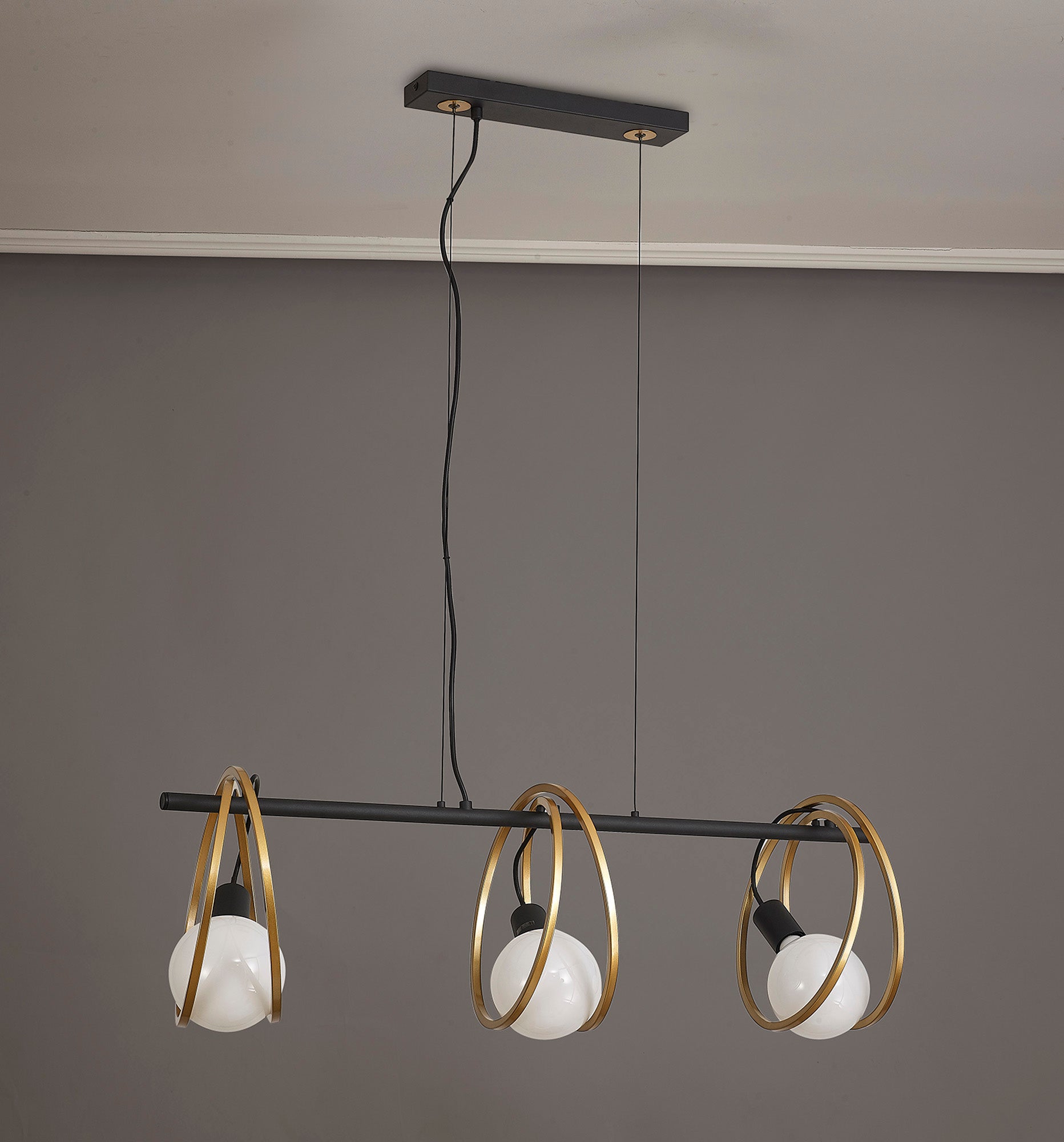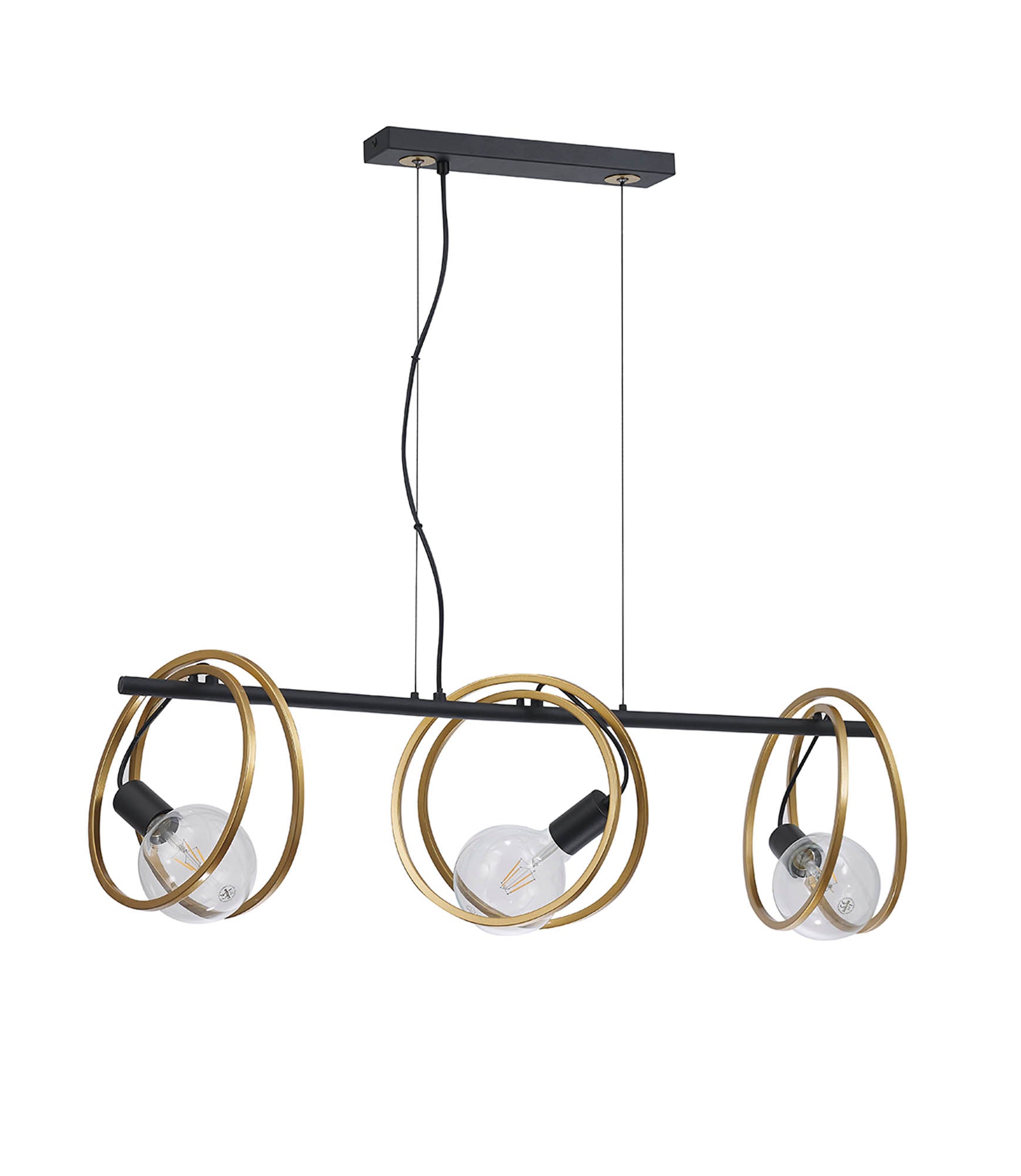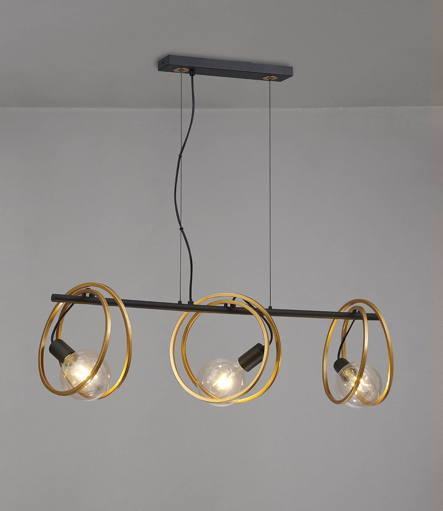 Corfu Double Ring Kitchen Table/Island Light, 3 Light E27, Matt Black & Painted Gold, G95 & 120 Lamp Recommended